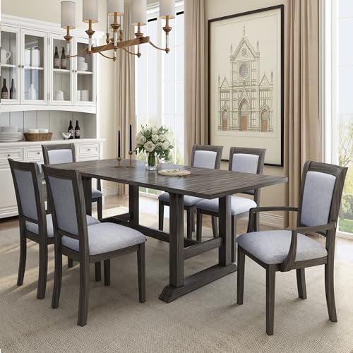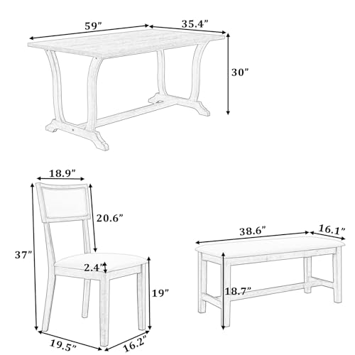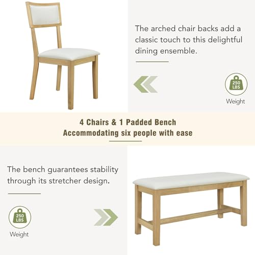 Dining Table Set for 6, Kitchen Table and Chairs Dining Room Table Set for 6 with 1 Bench and 4 Upholstered Dining Chairs, Modern Wood Farmhouse Dinner Table Set (Style A)