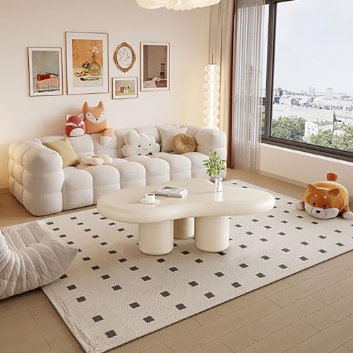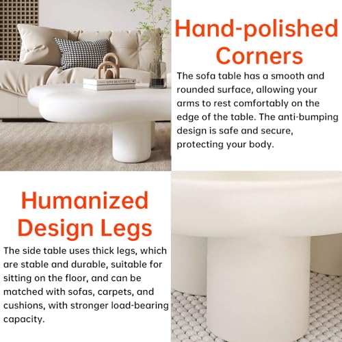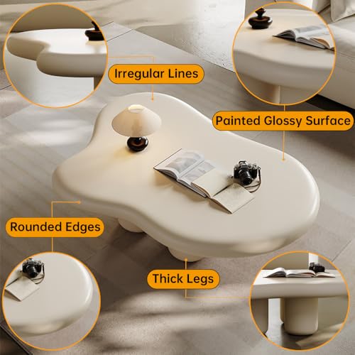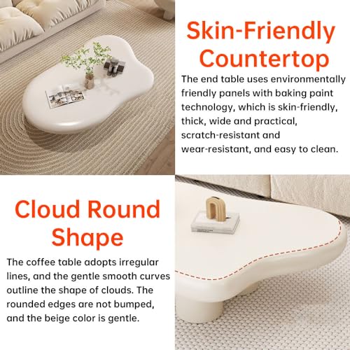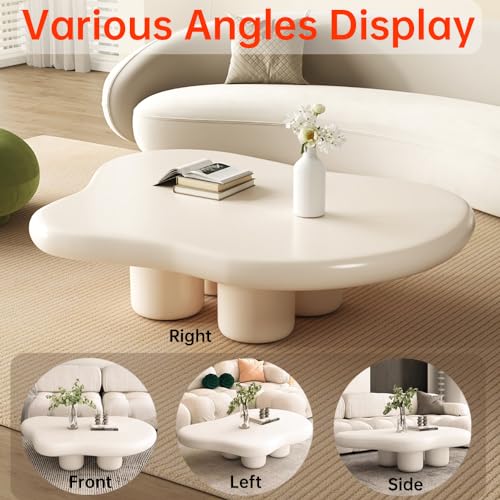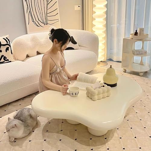 White Cloud Coffee Tables for Living Room Cute Cloud Shaped Coffee Table Modern Cartoon Creamy End Table Irregular Indoor Tea Table for Small Space Center Table for Balcony Patio (Creamy)