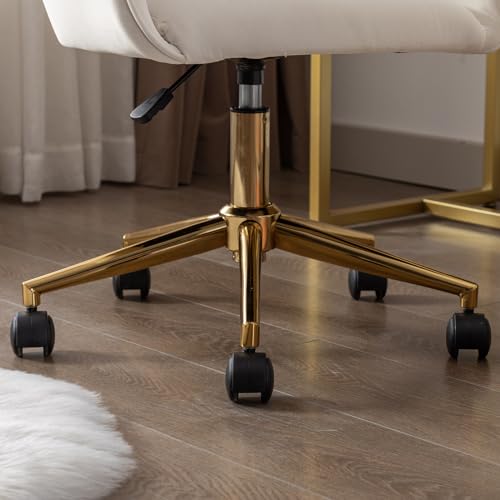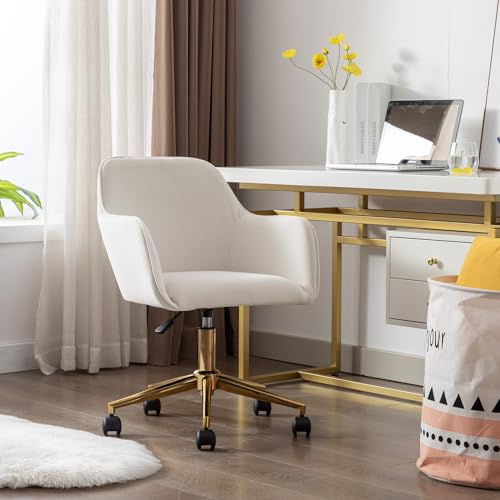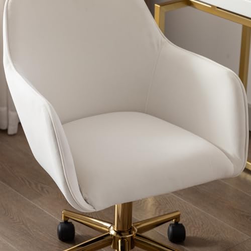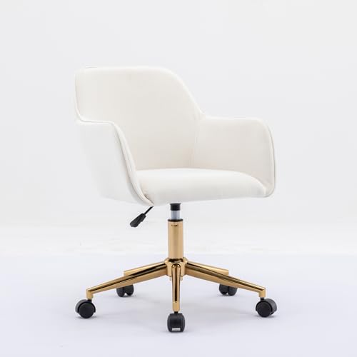 Modern Velvet Swivel Chair, Height Adjustable, 360° Swivel Office Chair, Upholstered Cosmetic Dresser Armchair with Metal Feet and Backrest, Bedroom Furniture Light Blue