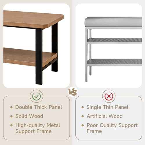 YOSHOOT Entryway Shoe Bench, Wood Shoe Rack Bench, Rustic Wooden Shoe Storage Bench for Living Dining Room Entry Way, 36 Inches Long