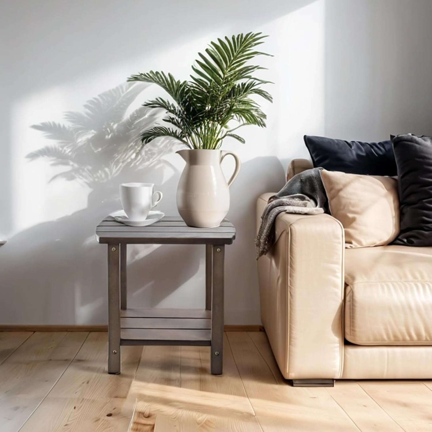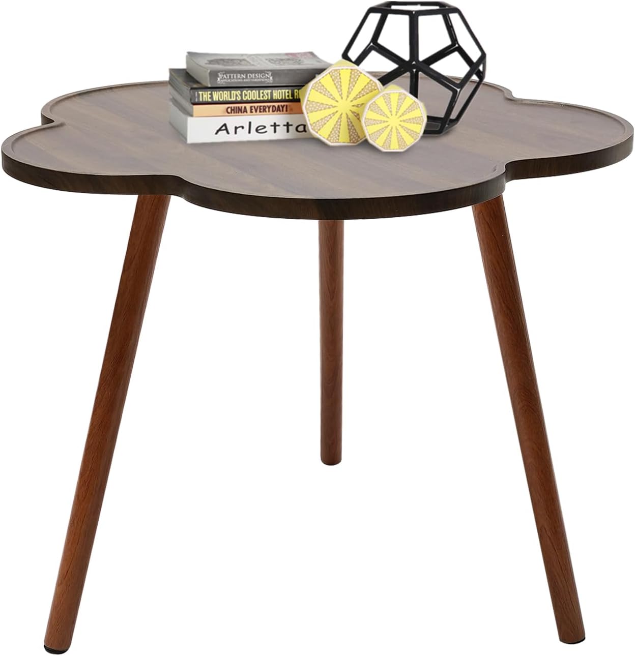 Freestanding End Table, Flower Shaped Coffee Table with Wood Legs Walnut Color Side Table with Large Capacity Space Saving for Home Living Room Bedroom Office