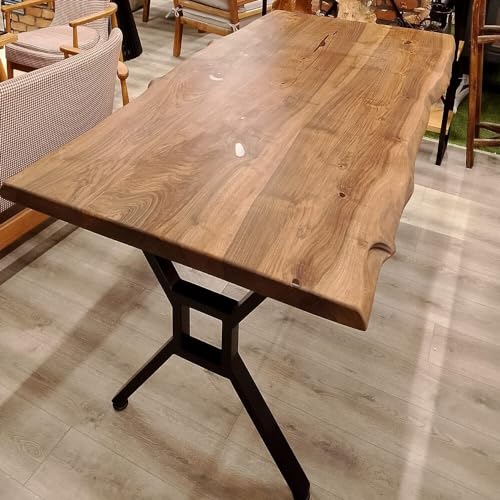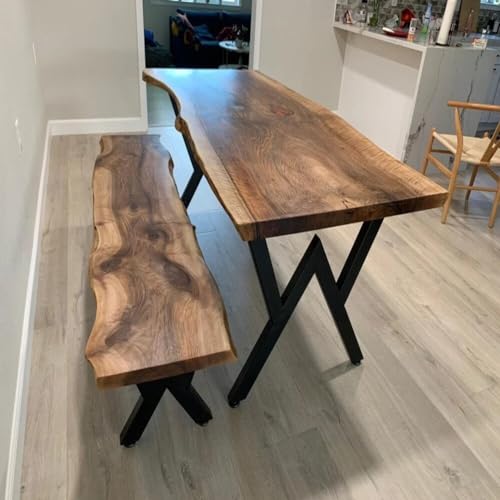 Large Walnut Dining Table And Bench - Live Edge Dining Table - Solid Wood Dining Table - Kitchen Table - Wooden Table - Rustic Table - Farmhouse Table - Dining Room Table (30 W x 58 L Inch)