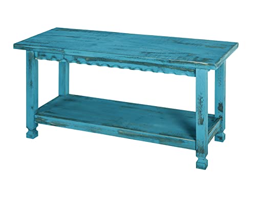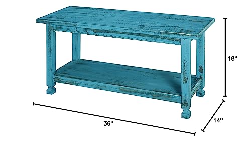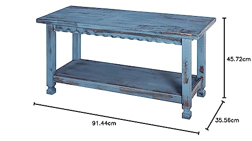 Alaterre ACCA03BA Rustic Cottage Bench with 1 Shelf, Blue Antique