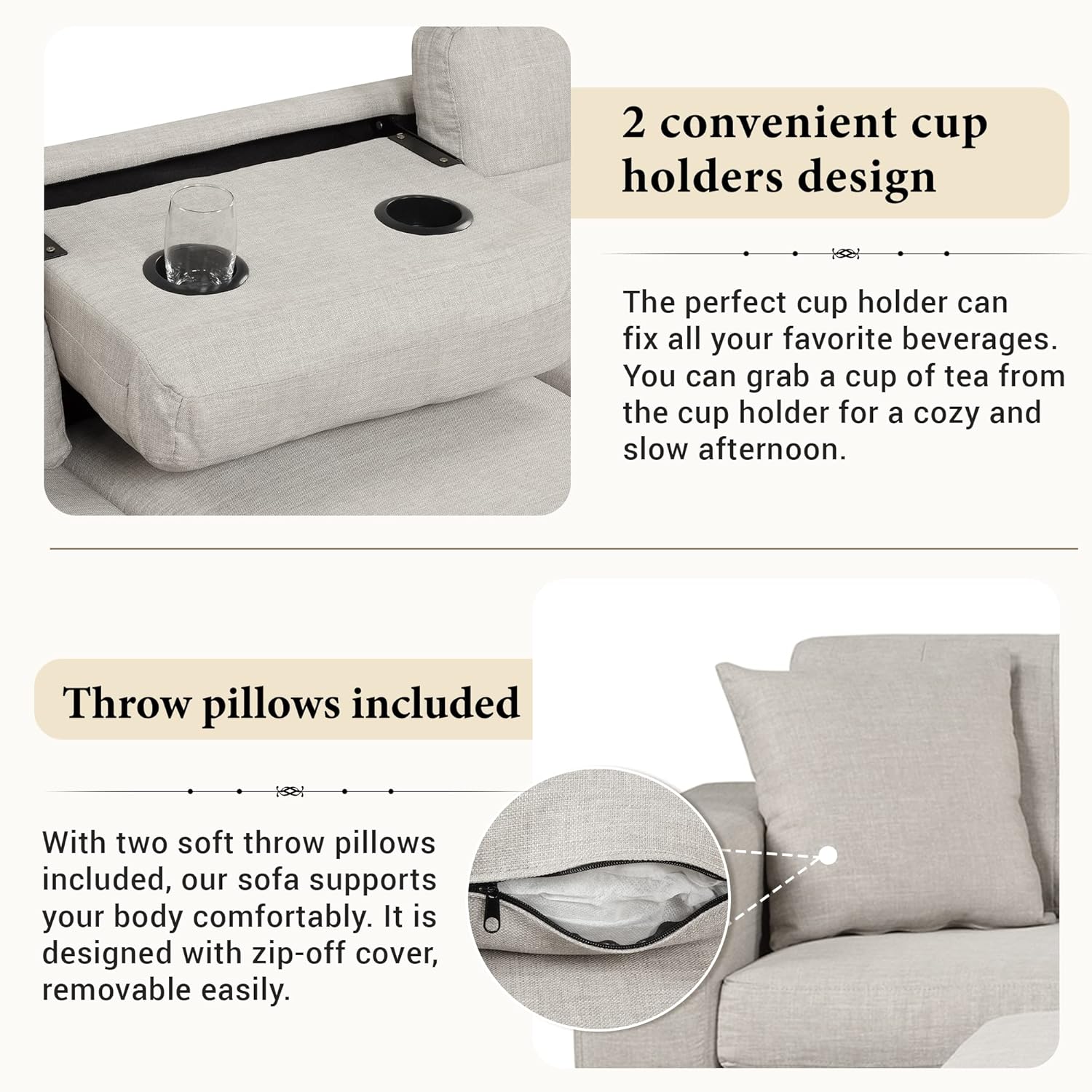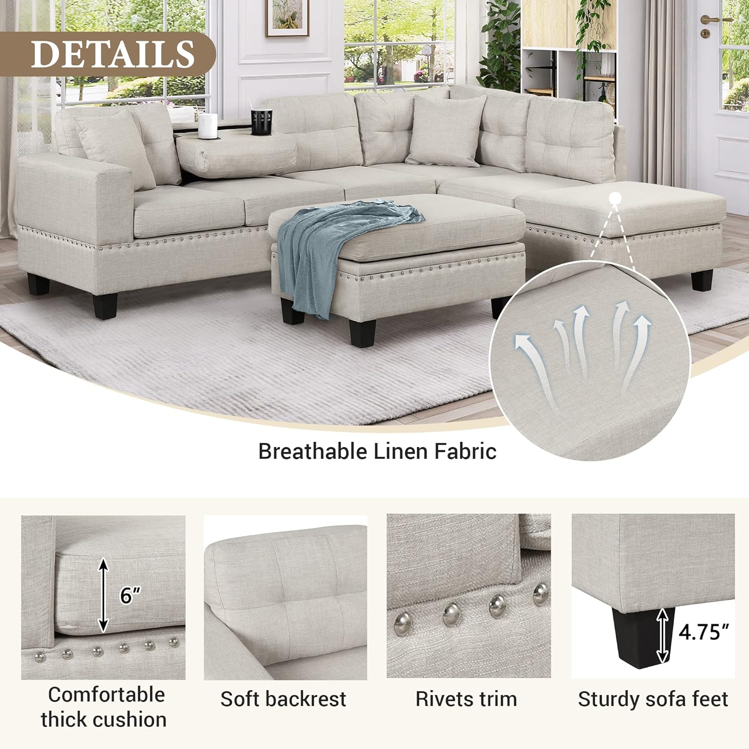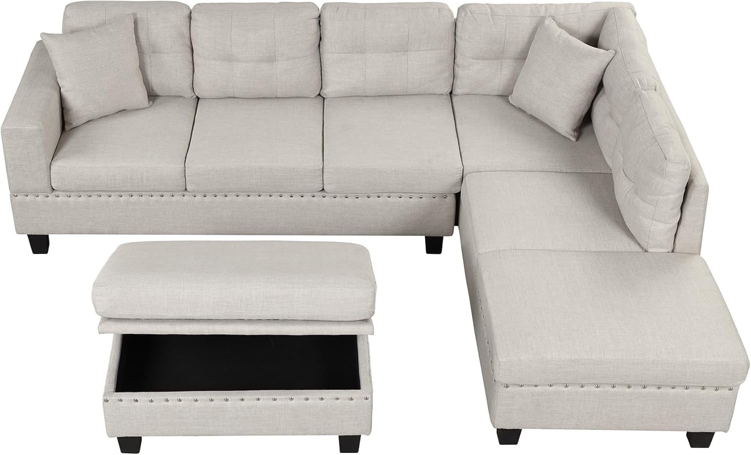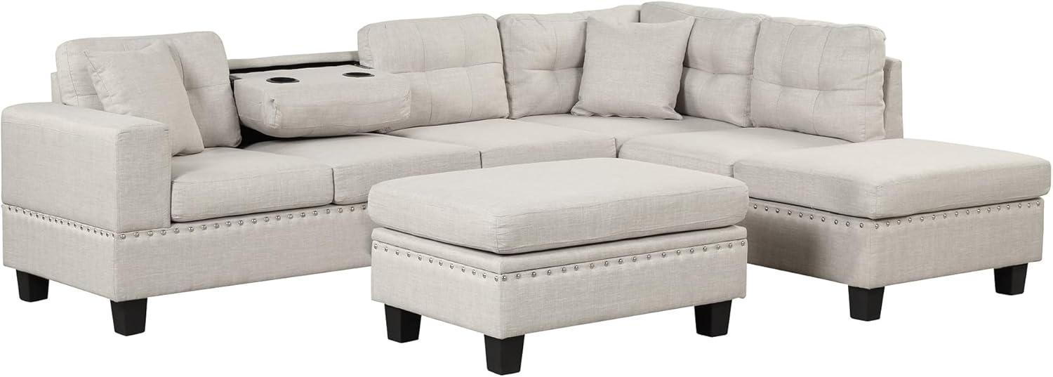 104.5" Modern Sectional Sofa with Storage Ottoman, L-Shape Couch with 2 Pillows and Cup Holder,Sectional Sofa with Reversible Chaise for Living Room,Light Gray