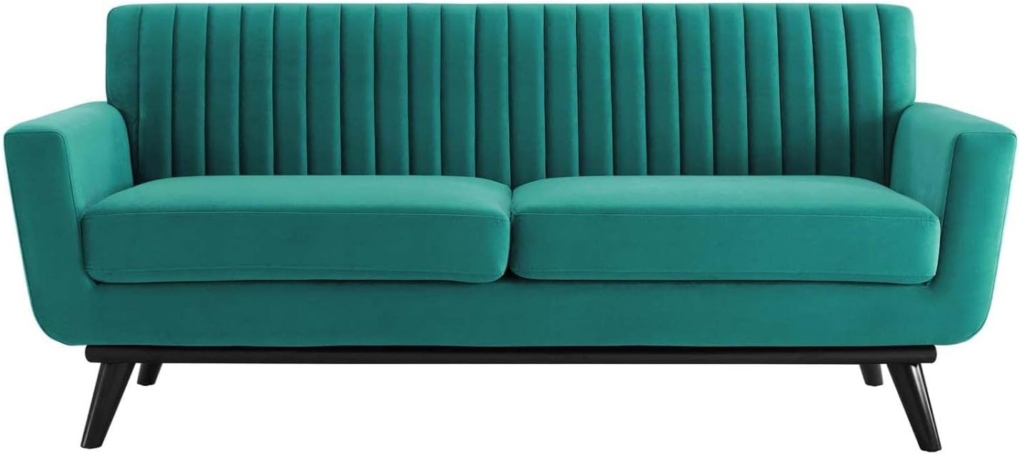 Modway Engage Channel Tufted Performance Velvet Loveseat in Teal