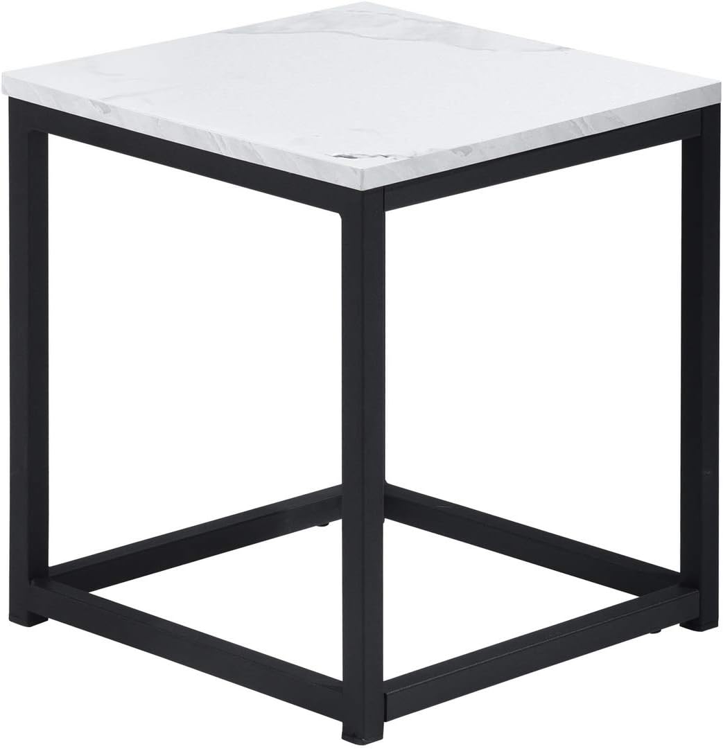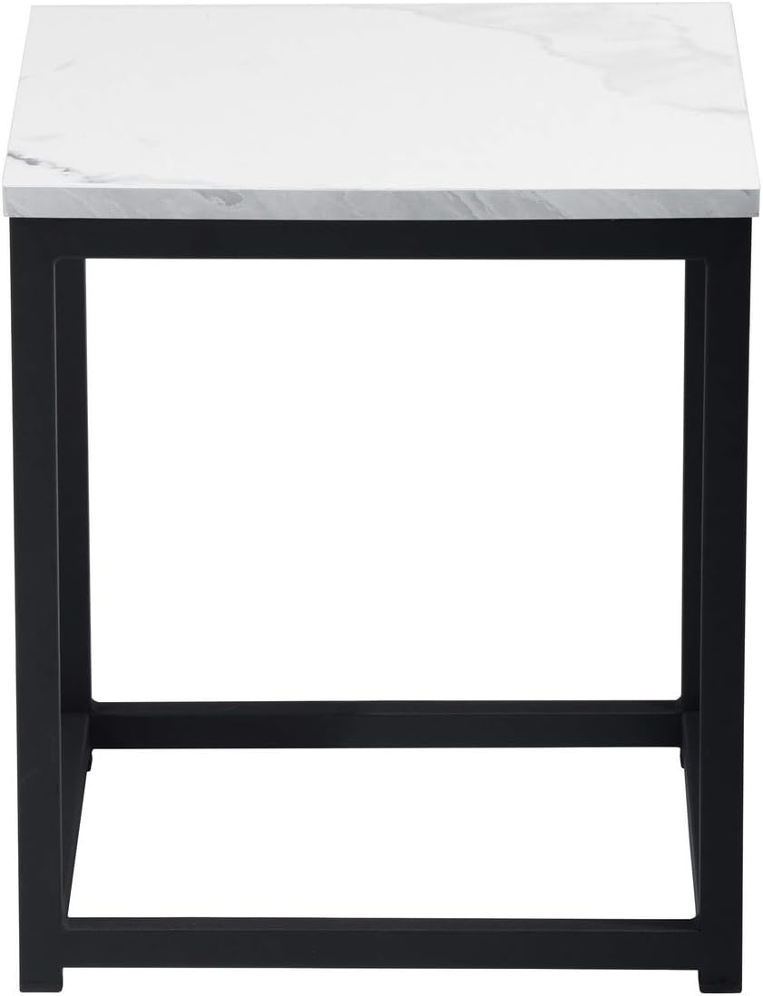Modern Square White Marble Print End Table/Side Table with Black Metal Frame for Living Room Bedroom, 13.8''D x 13.8''W x 15.7''H
