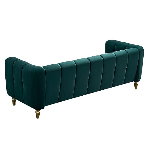 83.07'' Wide Modern Living Room, Elegant Upholstered Couch, Gold Metal Legs, Rolled Arm Sofa, High-Density Foam, Velvet Tufted Fabric & Solid Wood Frame – Orange