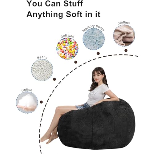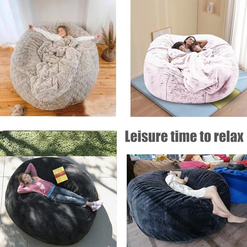 Bean Bag Chair Cover for Kids Adults(Cover Only,No Filler),Big Round Soft Fluffy PV Velvet Washable Lazy Sofa Bed Cover for Adults,Living Room Bedroom Furniture Outside Cover (Peacock Blue, 5FT)