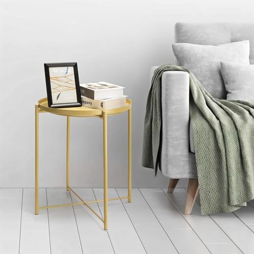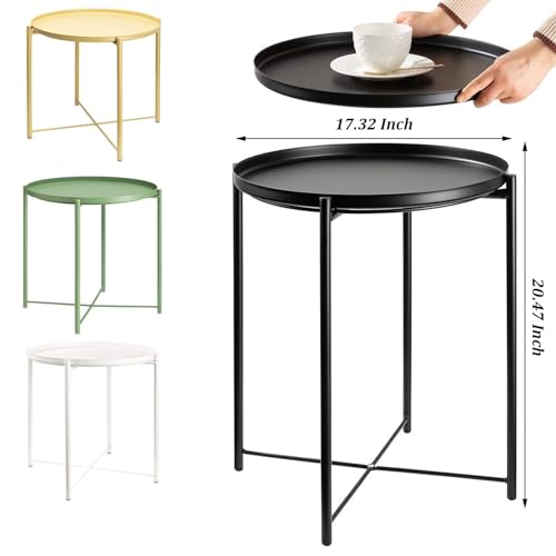 2 Tier Metal Side Table with Removable Tray, Metal End Tables Small Nightstand Accent Table Sofa Coffee Side Tables for Small Spaces Living Room Bedroom Office, Green
