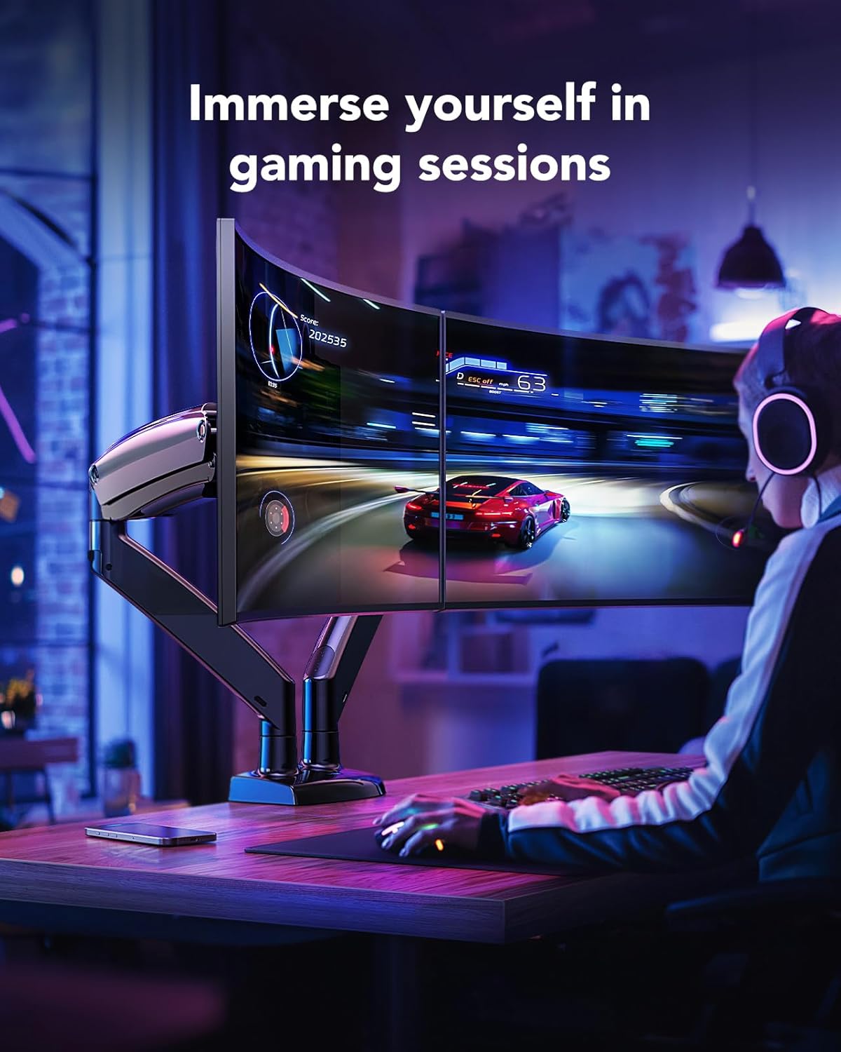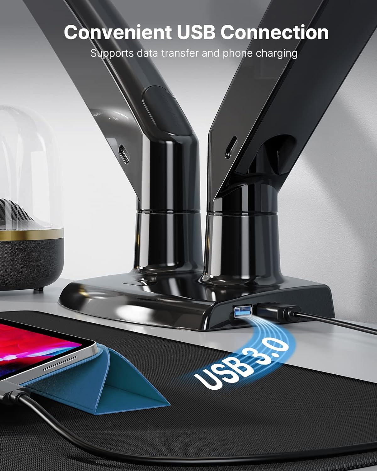 HUANUO Dual Monitor Stand for 13 to 35 inch, Premium Dual Monitor Mount with USB, Height Adjustable Monitor Stand for 2 Monitors, VESA Mount with Clamp/Grommet Base, Each Arm Hold up to 26.4lbs, Black