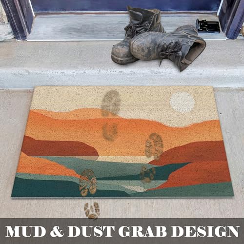 Boho Door Mat - Boho Sun Mountain Front Door Mats Outdoor, Boho Welcome Mat, Boho Door Mat Doormat Outdoor Indoor Entrance, Indoor Door Mats for Entryway, Boho Home Decor, 17x30 Inch