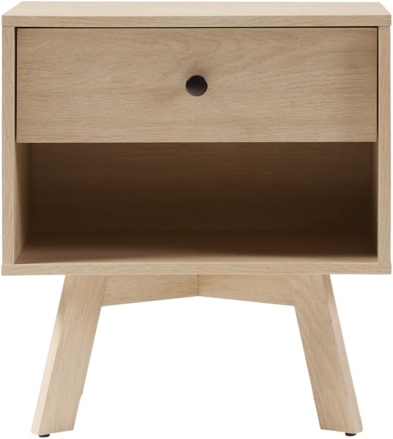 Mid-Century Modern Minimalist Nightstand with Single Drawer, Bedside Table for Bedroom,End Table for Living Room with 1 Storage Drawer and Open Shelf - Coastal Oak