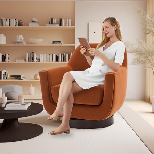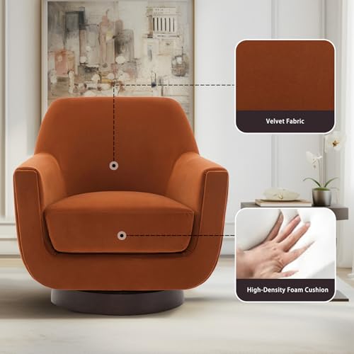 Swivel Accent Chair, 360 Degree Single Sofa Chair Armchair Luxury Comfy Velvet Chair Corner Chair Upholstered Reading Armchair Beige with Backrest Wooden Base for Living Room Bedroom Office