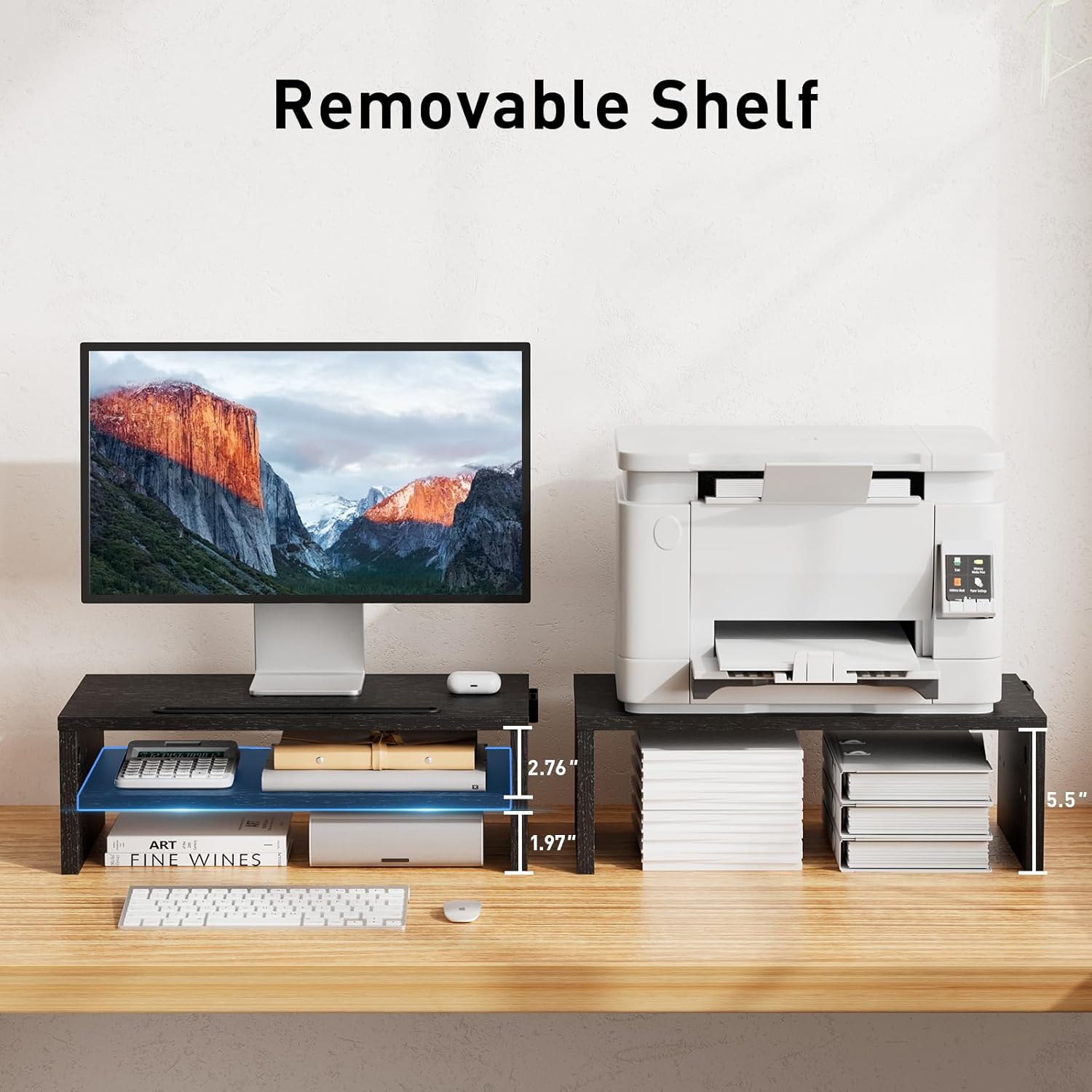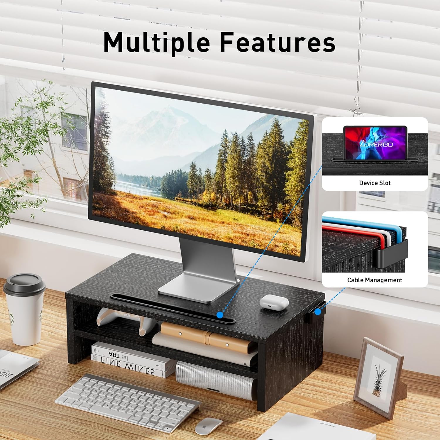 LORYERGO Monitor Stand - Monitor Riser 16.5 inch, 2 Tier Computer Stand, Monitor Stand Riser w/Cellphone Holder & Storage Space, Desk Stand for Laptop, Printer, PC, for Home & Office