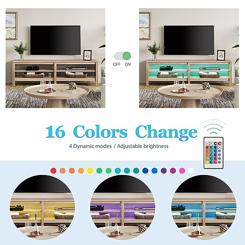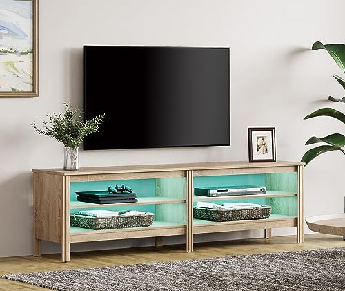 WAMPAT LED TV Stand for 100 Inch TV, Black Entertainment Center for 80 85 90 inch TV Console Table with 6 Cubby Storage for Living Room Bedroom