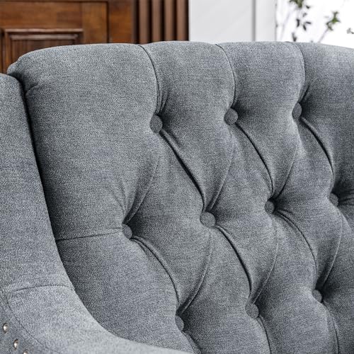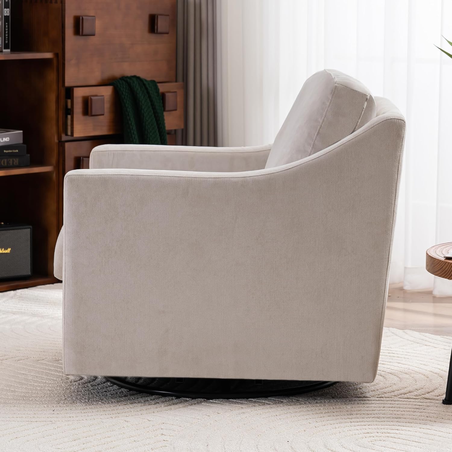 Large swivel chair, upholstered armchair, modern chair, skin-friendly gradient color linen fabric, comfortable to sit. Suitable for reception living room, beige