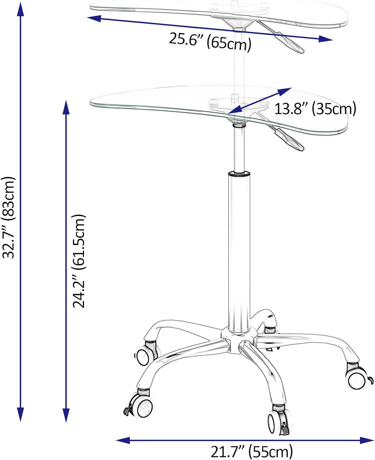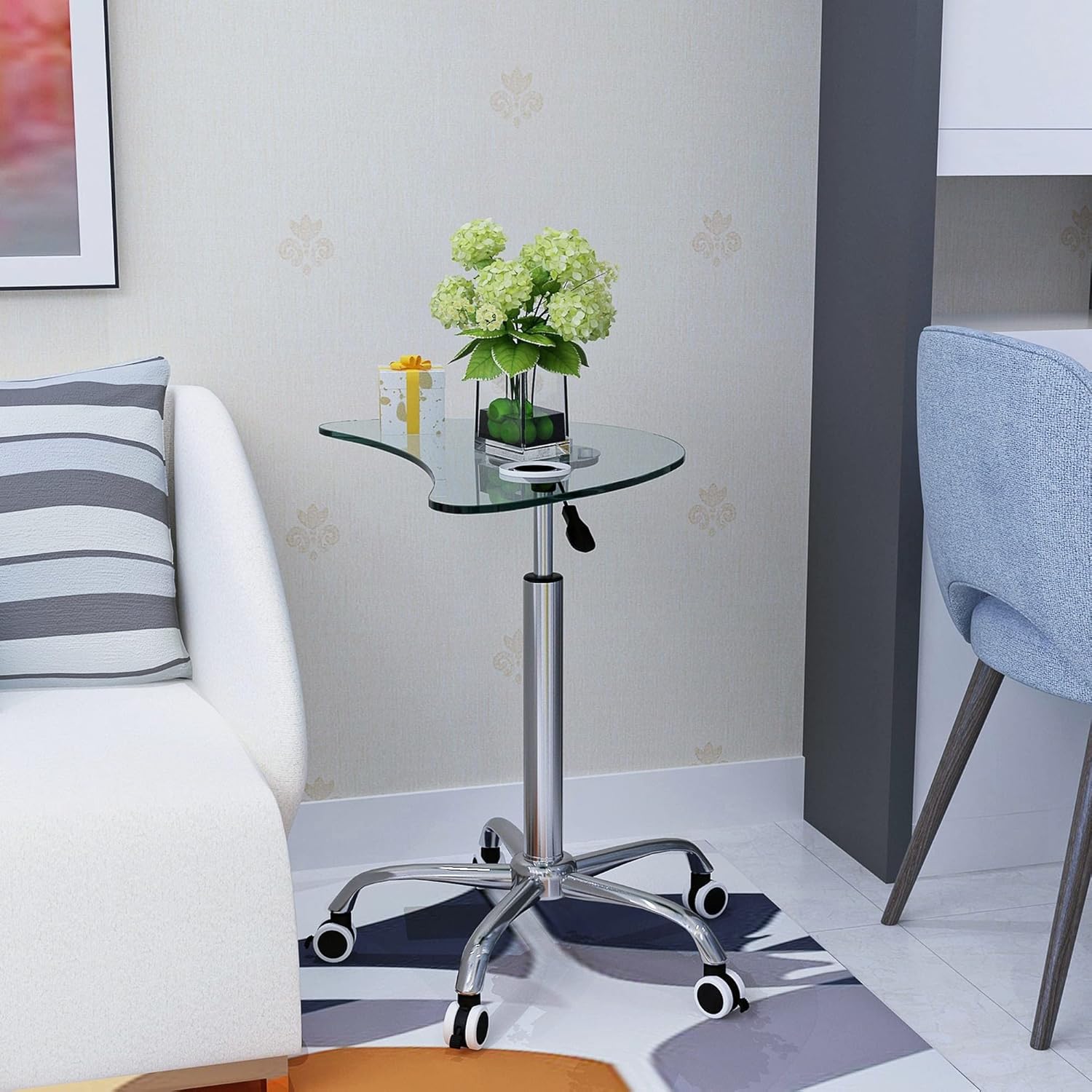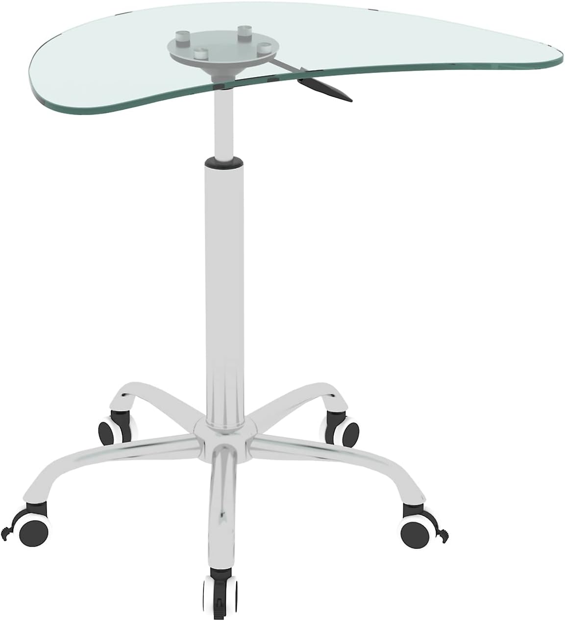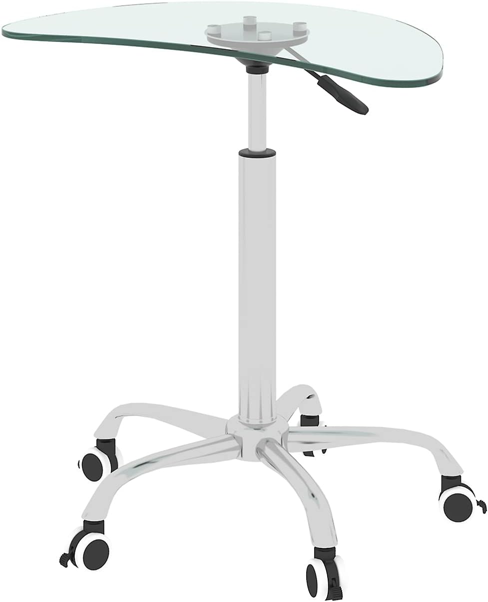 Adjustable Height Transparent Tempered Glass Table Desk Table with Lockable Wheels(Adjustable Range 24.2 "~32.7 ")