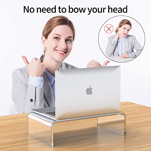 Acrylic Monitor Stand Riser 16Lx8.5Wx5H Inch 2-Tiers Acrylic Laptop Stand Riser for Desk with Anti Slip Mat Clear Monitor Stand with Storage for iMac MacBook and Any Size Computer Monitor