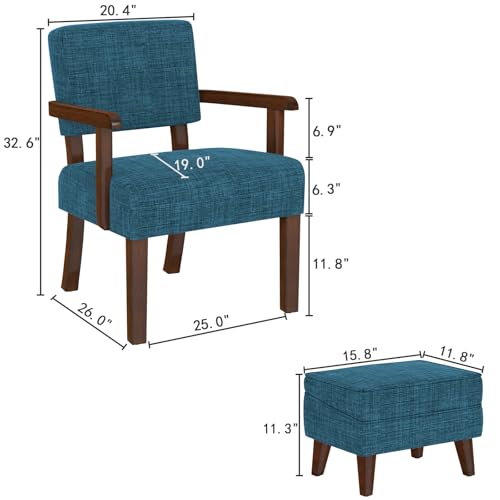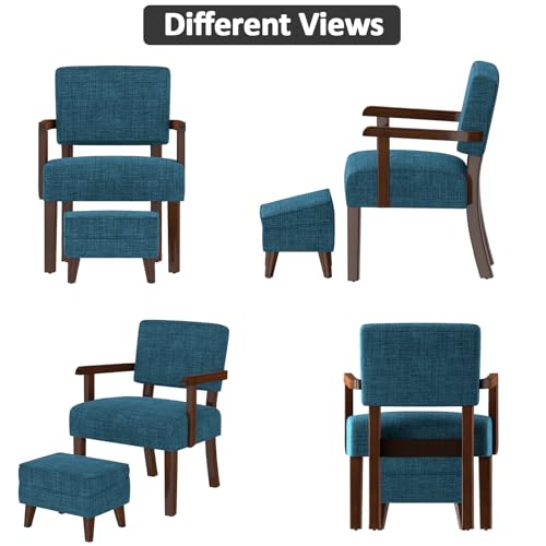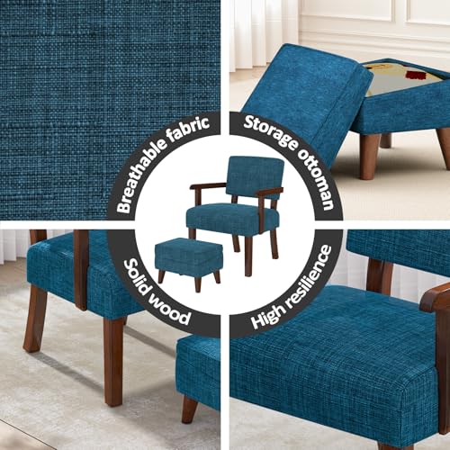 Accent Chairs with Adjustable Ottoman, Comfy Arm Footrest Set, Storage Footstool, Sofa Armchair with Footrest, Lazy Chair Set for Living Room/Bedroom/Reading Room, Beige