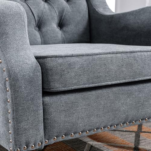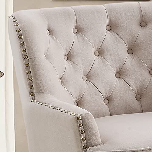 Accent Chair, Living Room Chair, Footrest Chair Set with Vintage Brass Studs, Button Tufted Upholstered Armchair for Living Room, Comfy Reading Chair for Bedroom, Reception Room (Beige)