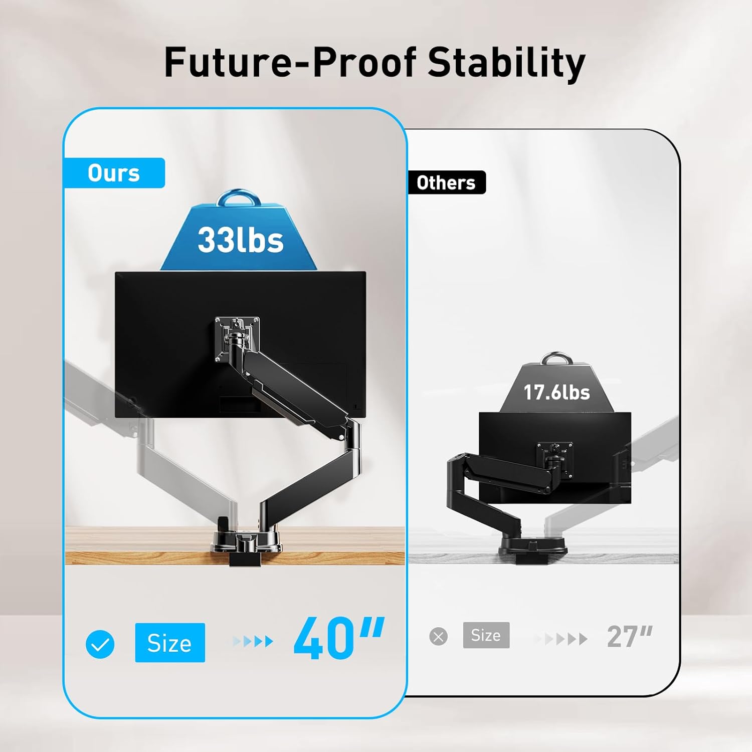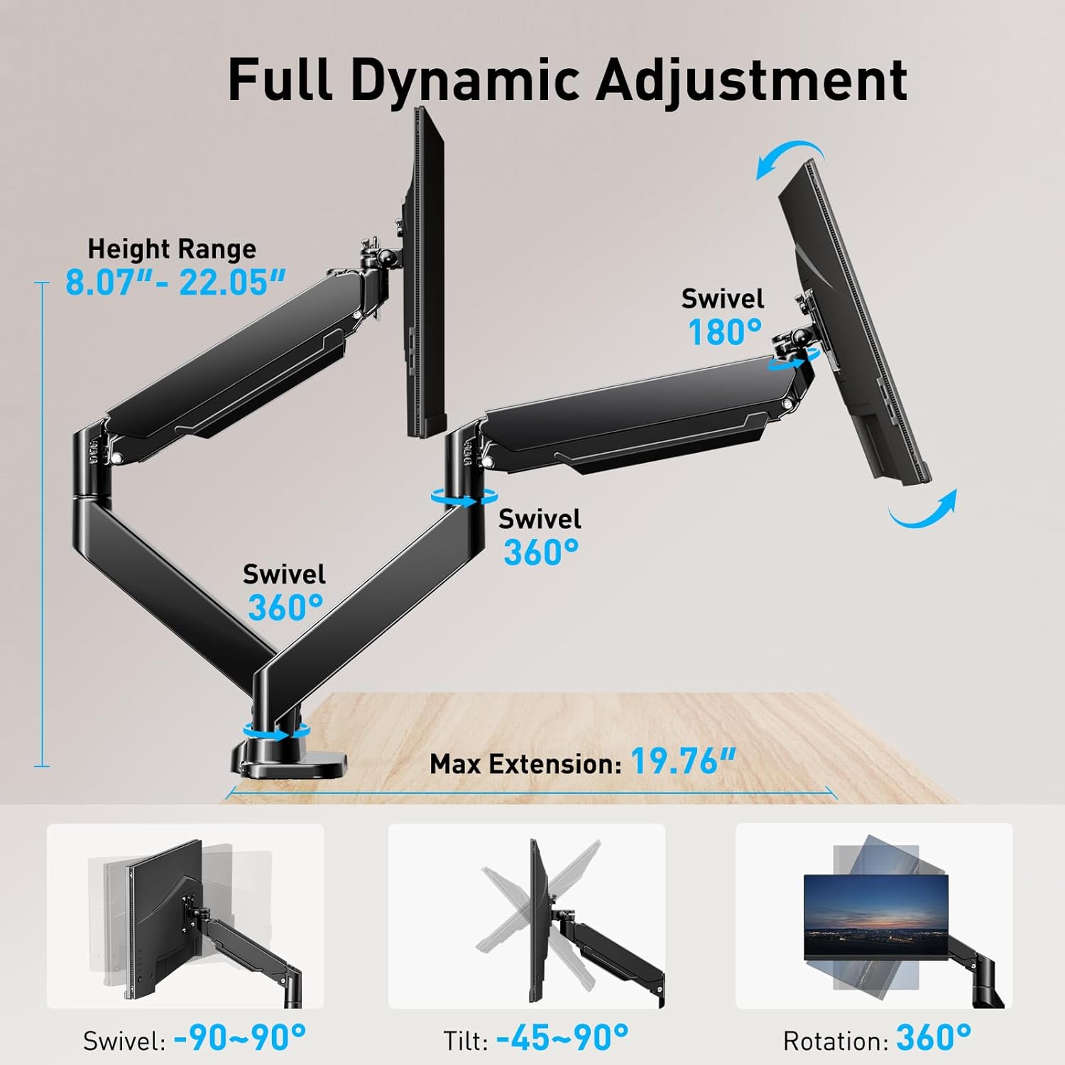 HUANUO Dual Monitor Mount for 40 inch Ultrawide Screens up to 33 lbs, Heavy Duty Dual Monitor Stand with Full Motion Adjustment, Dual Monitor Arm with Tilt, Swivel, Rotation, VESA 75x75 or 100x100mm