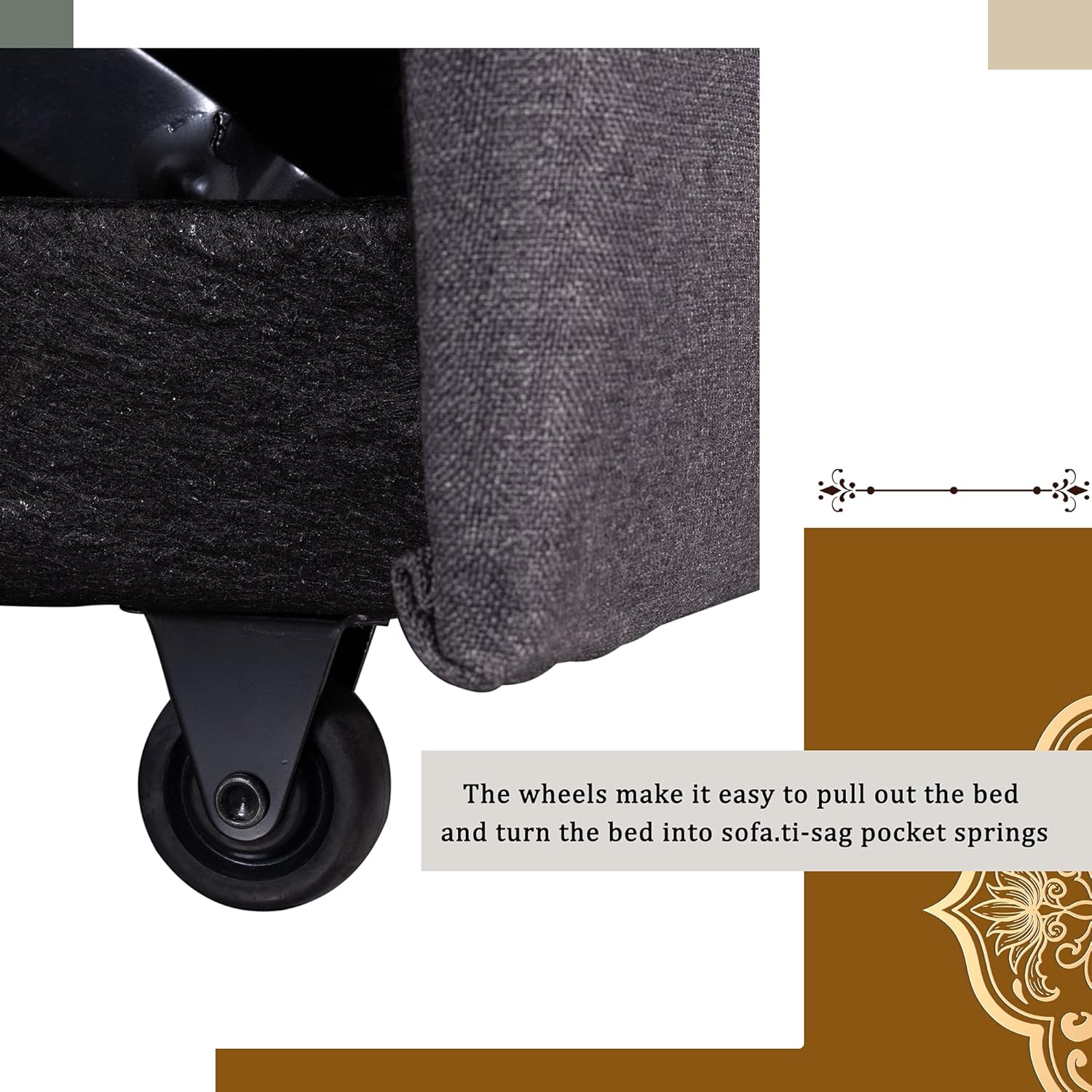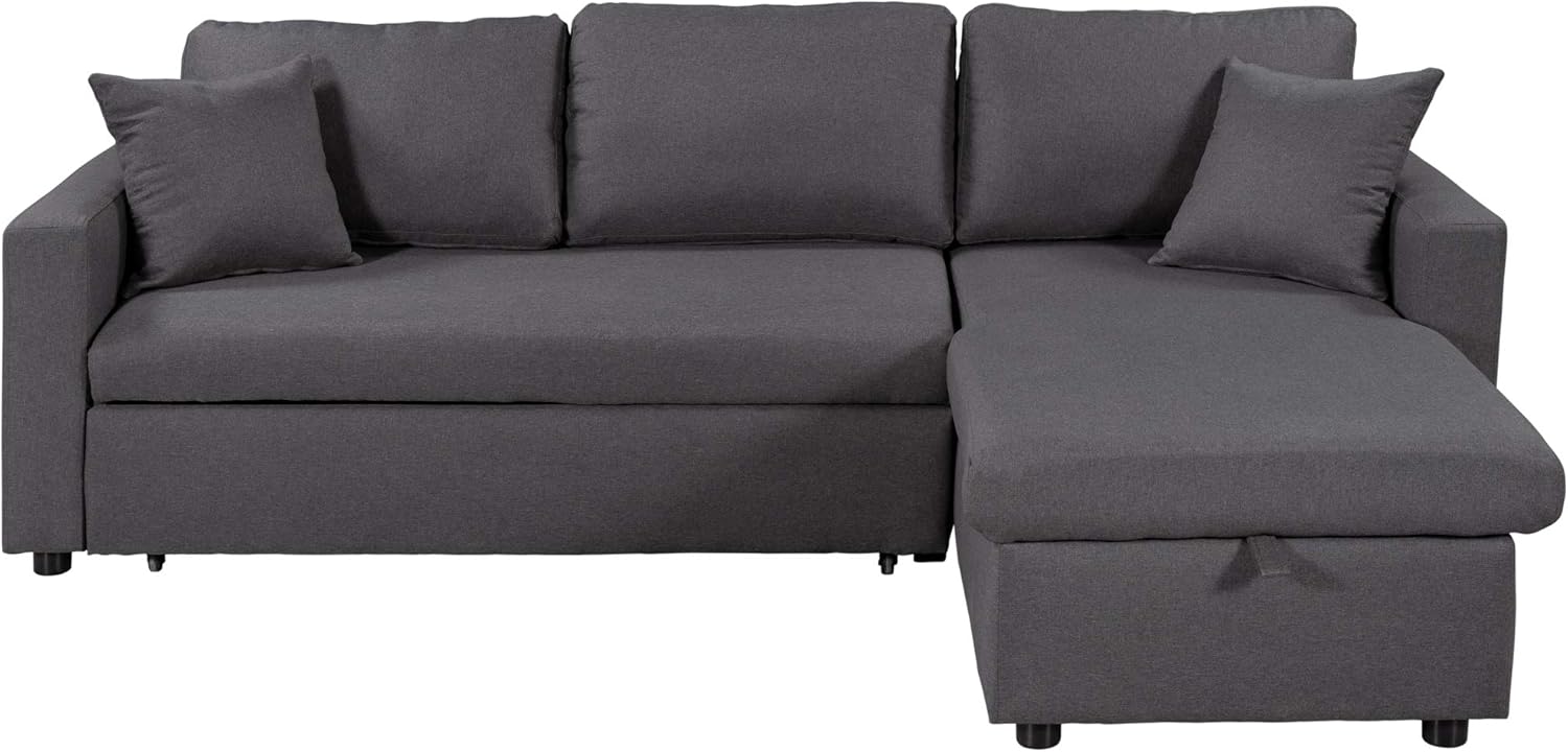 LUMISOL Convertible Sleeper Sofa with Storage Chaise, Pull Out Couch Bed, L-Shape 3-Seats Sofa Couch with 2 Toss Pillows for Living Room, Apartment