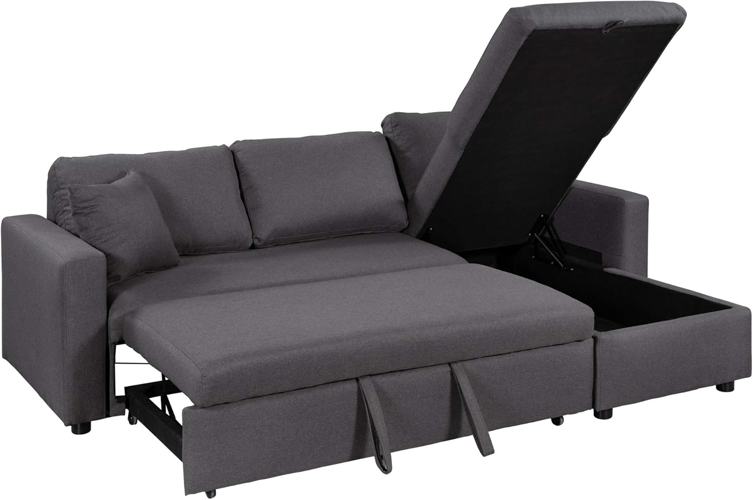 Pull Bed Sleeper Sofa, L-Shape Convertible Sectional Couch with Storage Chaise for Living Room, Apartment, Gray
