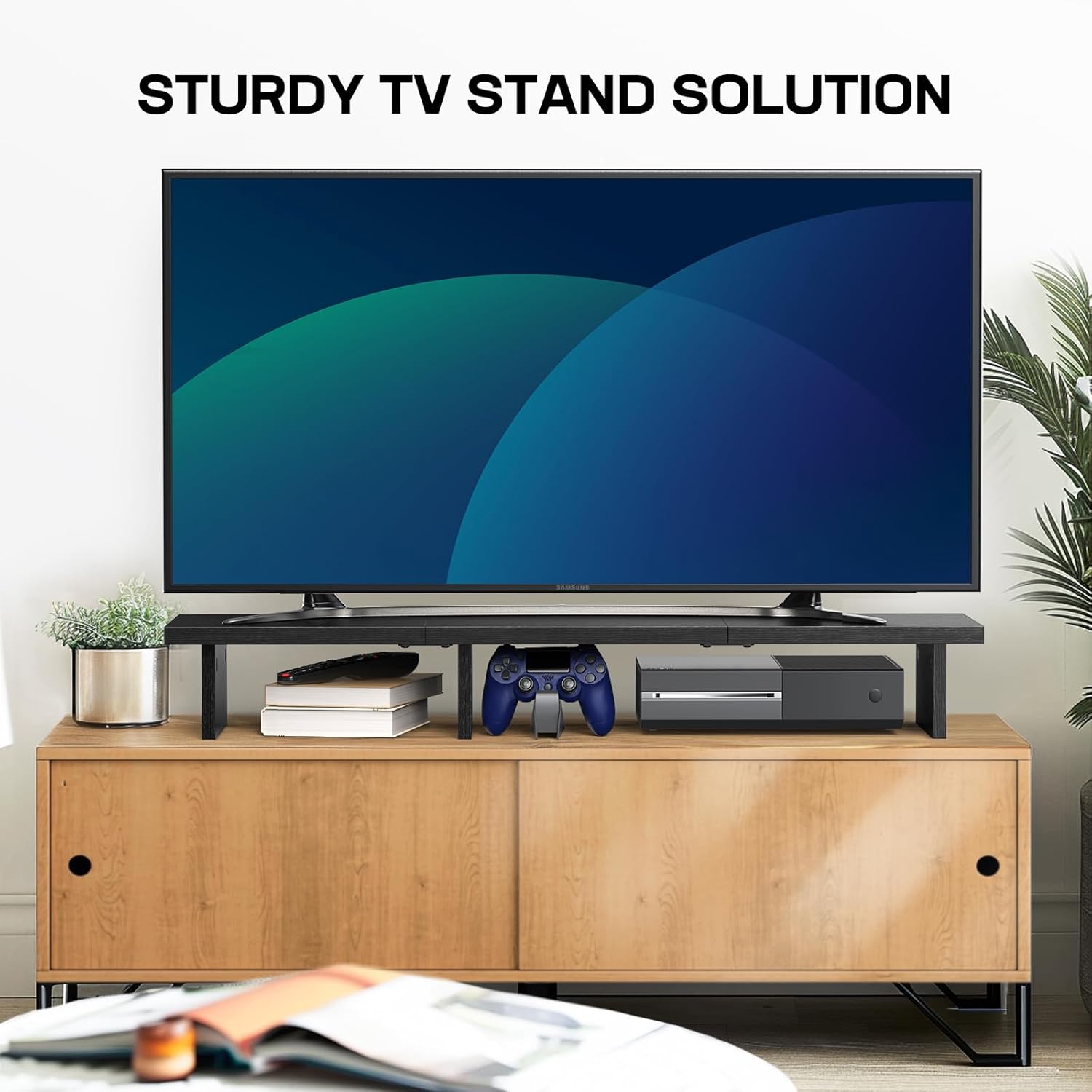 HUANUO Dual Monitor Stand Riser, Monitor Stand for Desk with Cable Clip, Computer Monitor Stand for 2 Monitors, Desktop Storage Shelf Organizer Stand for PC, Laptop, Printer, TV