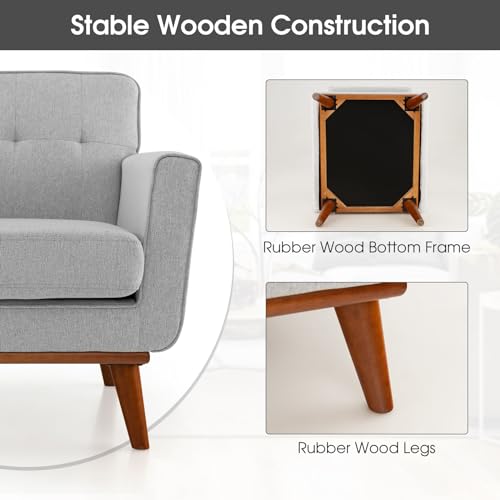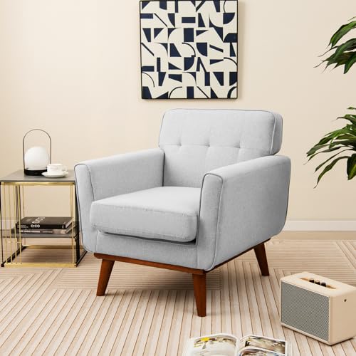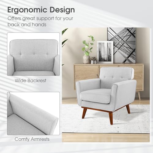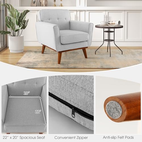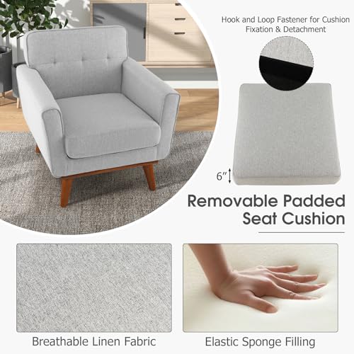Giantex Modern Accent Chair, Upholstered Linen Fabric Armchair w/Removable Padded Seat Cushion, Solid Rubber Wood Legs, Button Tufted Single Sofa Chair for Living Room, Bedroom, Study, Beige