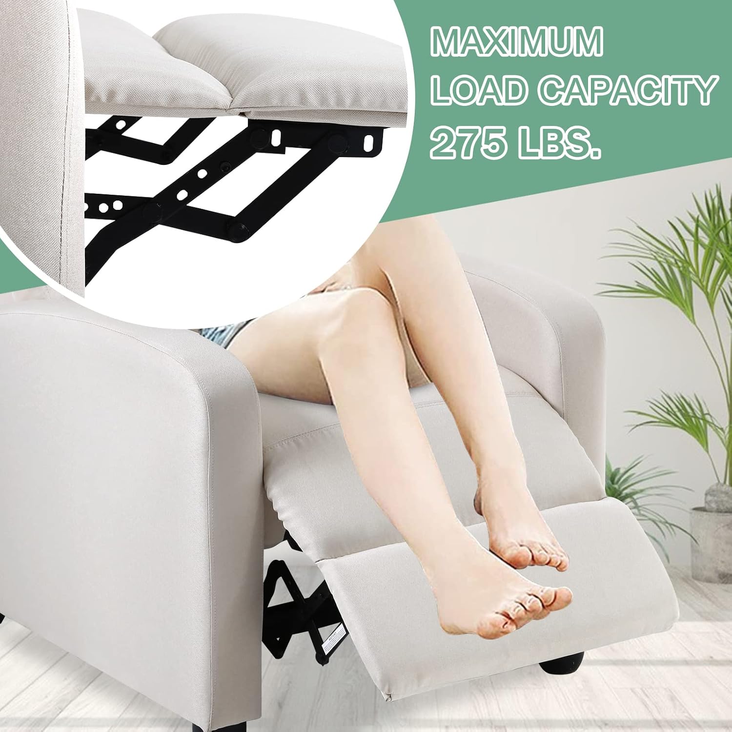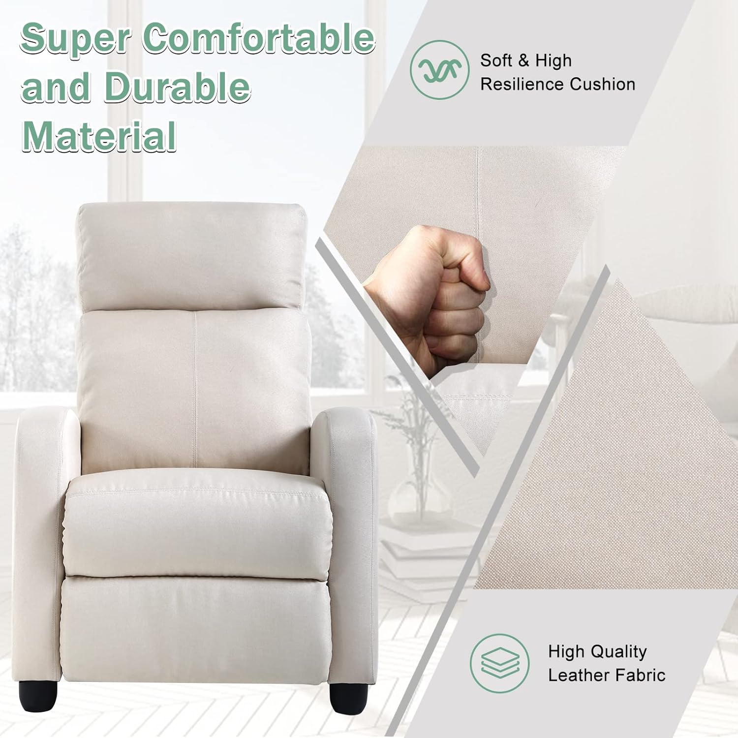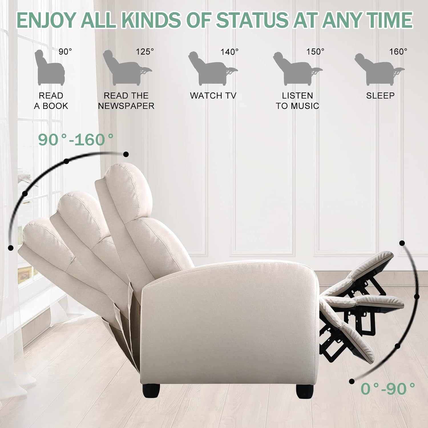 Living Room Recliner Chair Modern Reclining Easy Lounge Winback Single Sofa Reading Chair Fabric Home Theater Seating Massage Adjustable Accent Armchair w/ Thick Seat Cushion & Backrest, Beige