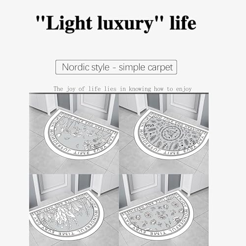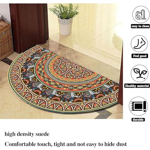 Half Round Door Mat, Mandala Ethnic Floral Design, Washable, Half Circle, Bohemian, Ethnic Design, Non-Slip, Half Moon, Semicircle, Fireplace (Grey Edge, 60 x 90 cm)