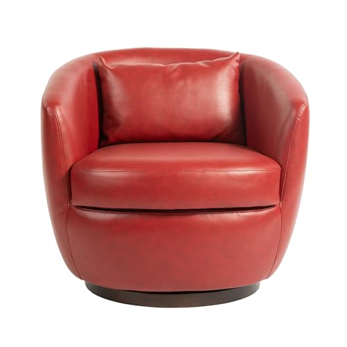 360° Swivel Barrel Chair with Hidden Storage, Modern Upholstered PU Leather Swivel Accent Chair with Pillow, Comfy Single Armchair for Living Room Bedroom, Light Beige