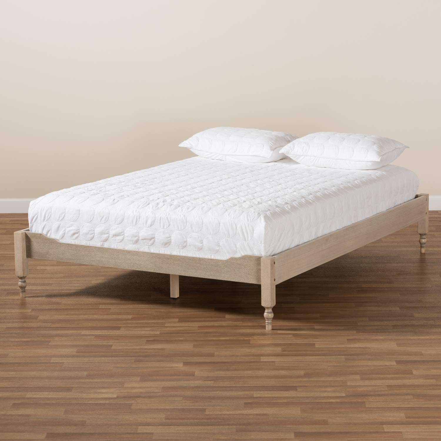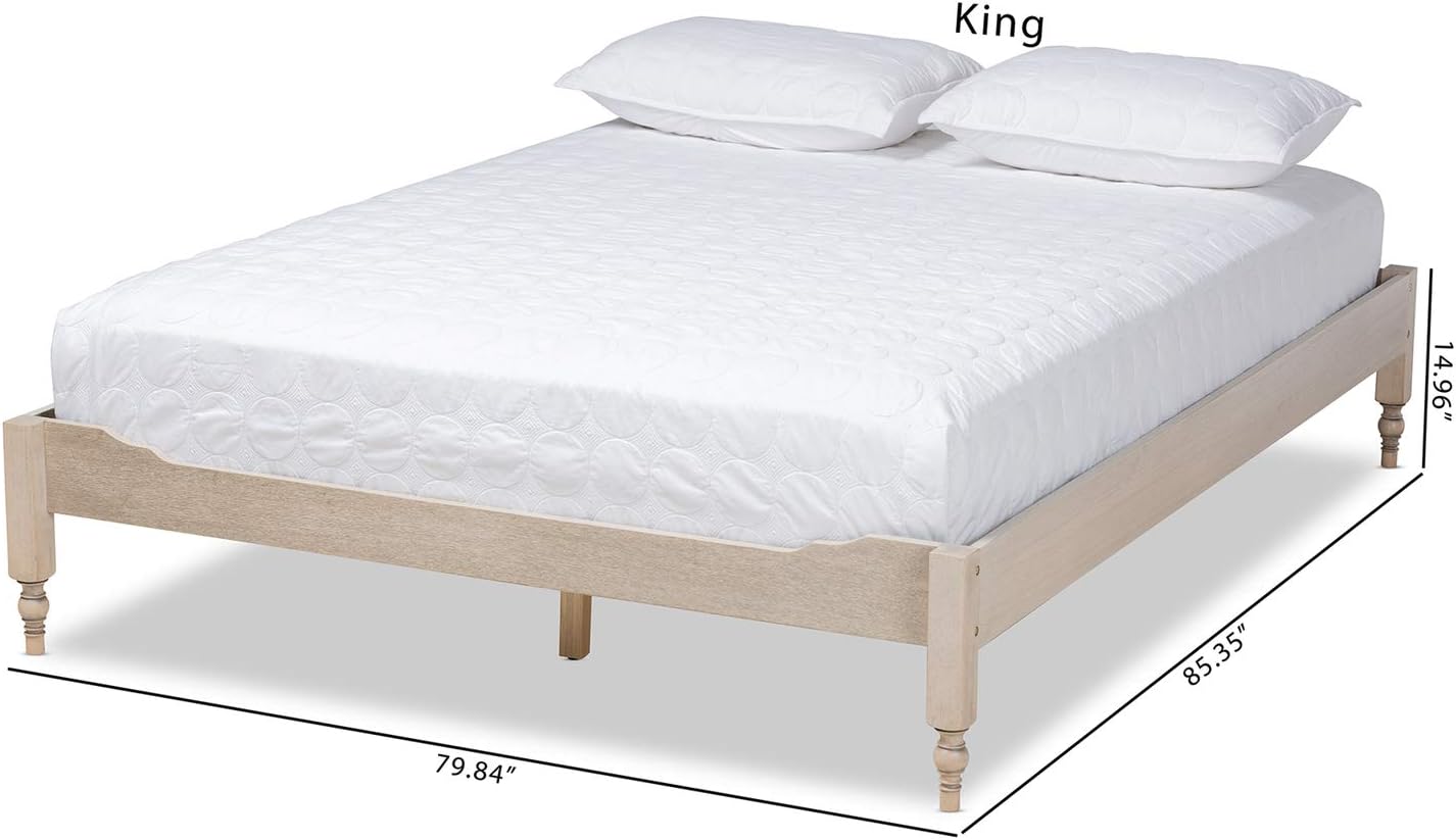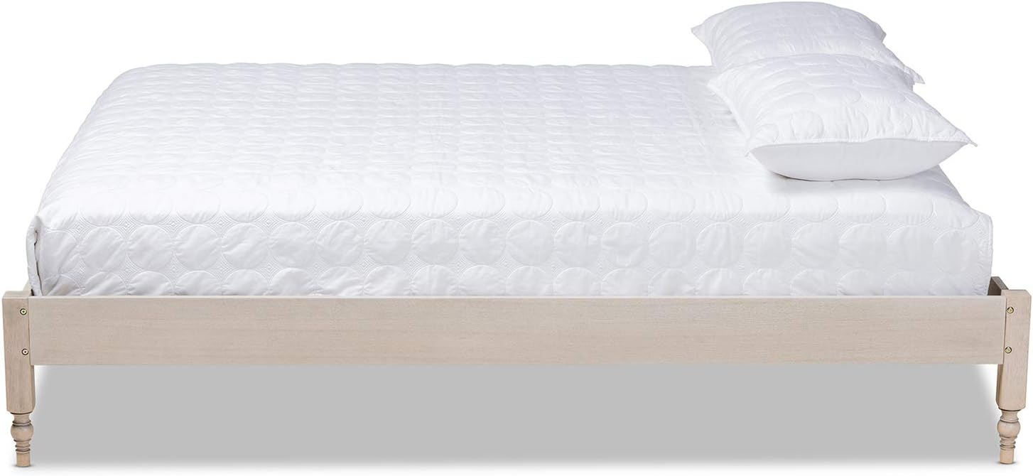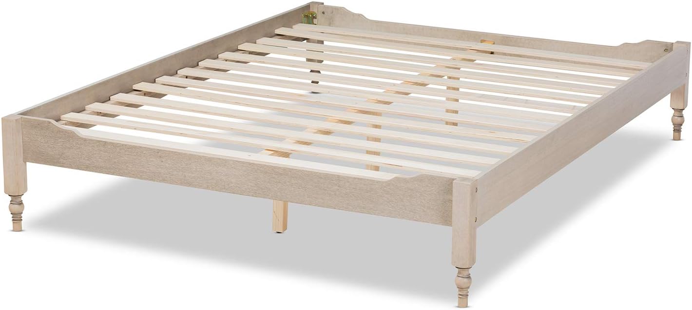 Baxton Studio Laure French Bohemian Antique White Oak Finished Wood Full Size Platform Bed Frame