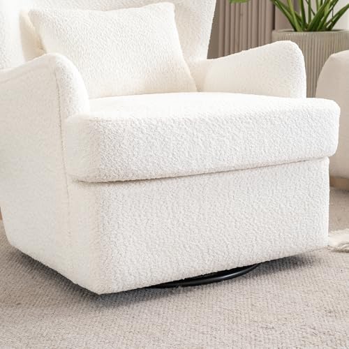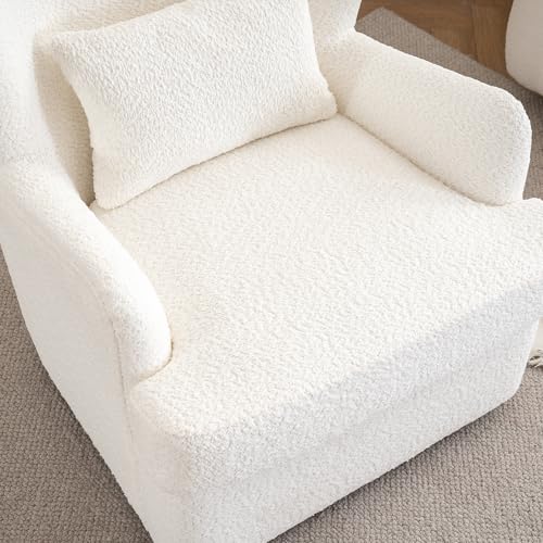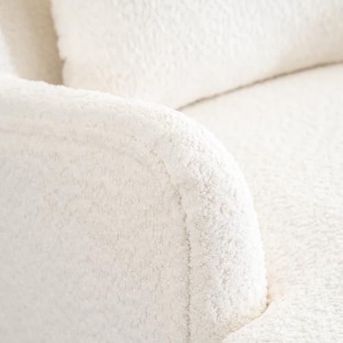 Swivel Accent Chair with Ottoman, 360° Swivel Barrel Chair with Footrest, Modern Teddy Velvet Lounge Armchair, Comfort Single Sofa Chair with Lounge Seat for Bedroom, Office, Living Room, Beige