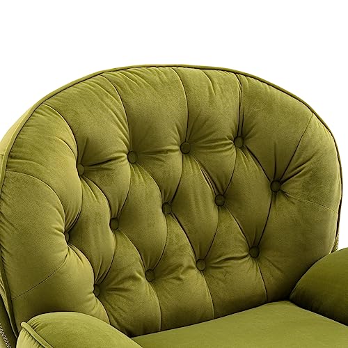 Modern Swivel Accent Chair with Ottoman, Velvet Lounge Chair with Footrest and Metal Base, Comfy 360 Degree Swiveling Armchair, Single Sofa Chair for Living Room, Bedroom, Beige