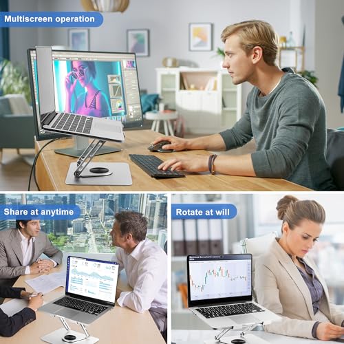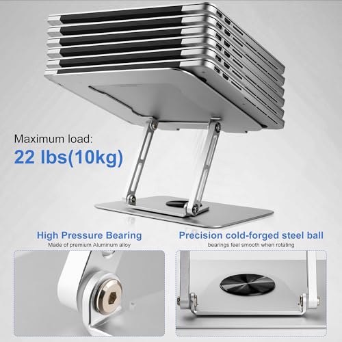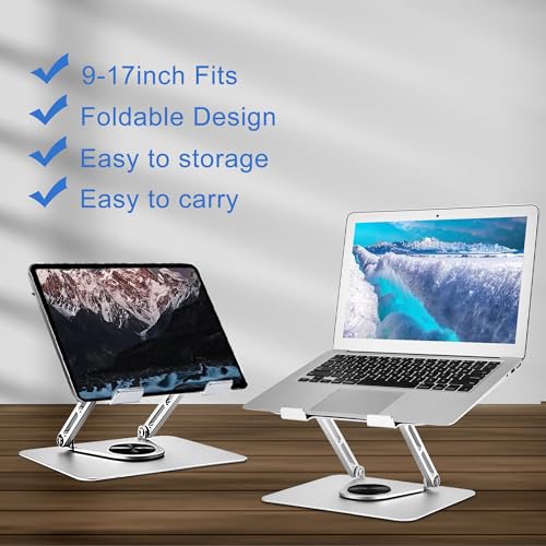 Laptop Stand for Desk Adjustable Height,Aluminum Alloy Swivel Computer Stand for Laptop,MacBook Stand with 360° Rotating Base,Ergonomic Laptop Riser for Desk,Fits 9-17 inch (Gray)