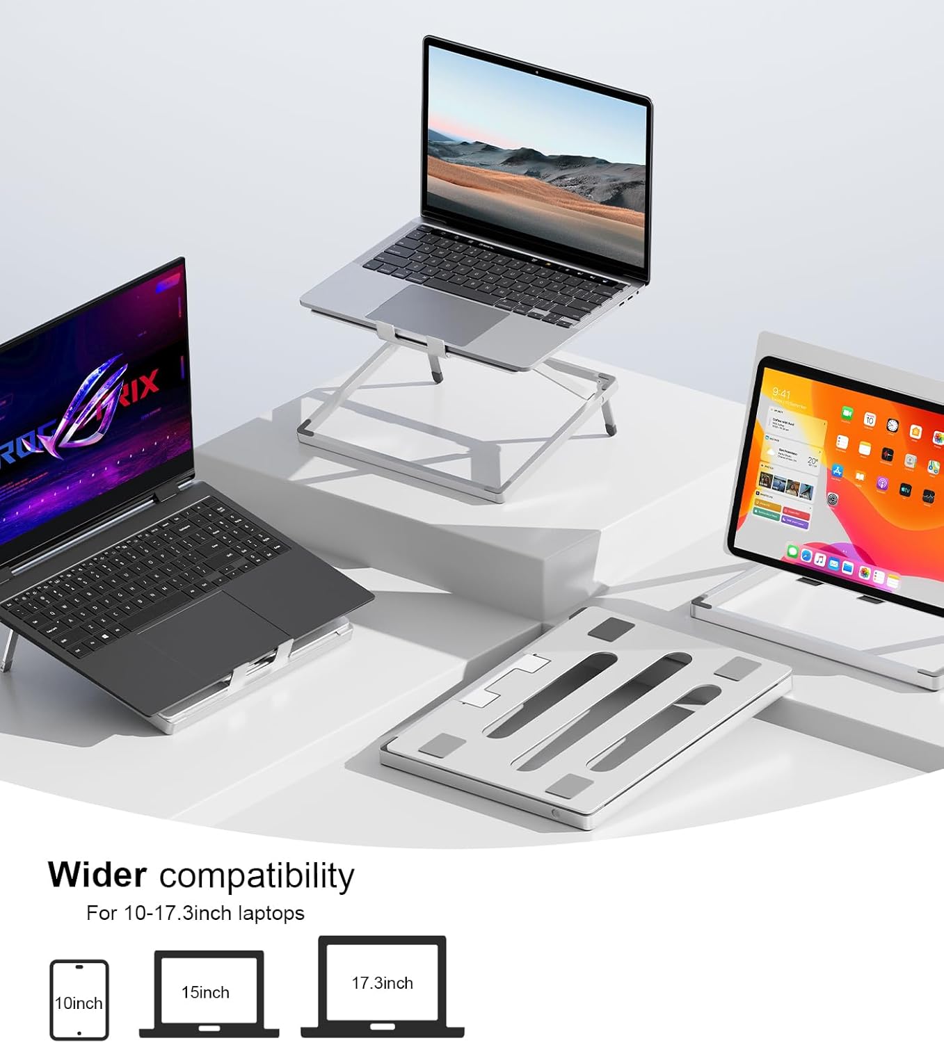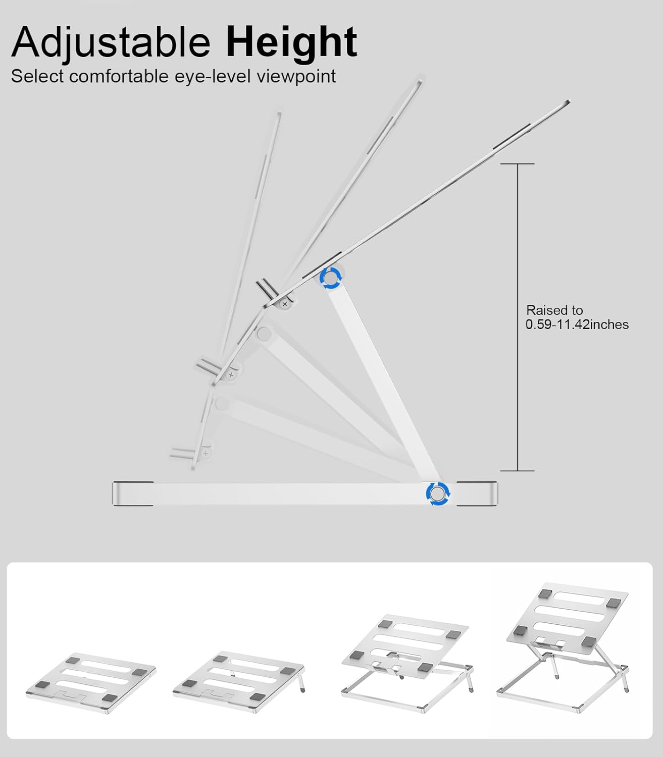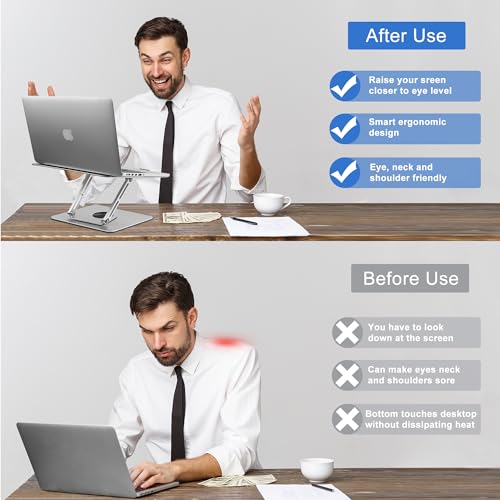 Laptop Stand for Desk, Height Adjustable Laptop Riser Aluminum Portable Laptop Holder, Holds All Laptops and Notebook up to 17.3 Inch, Silver