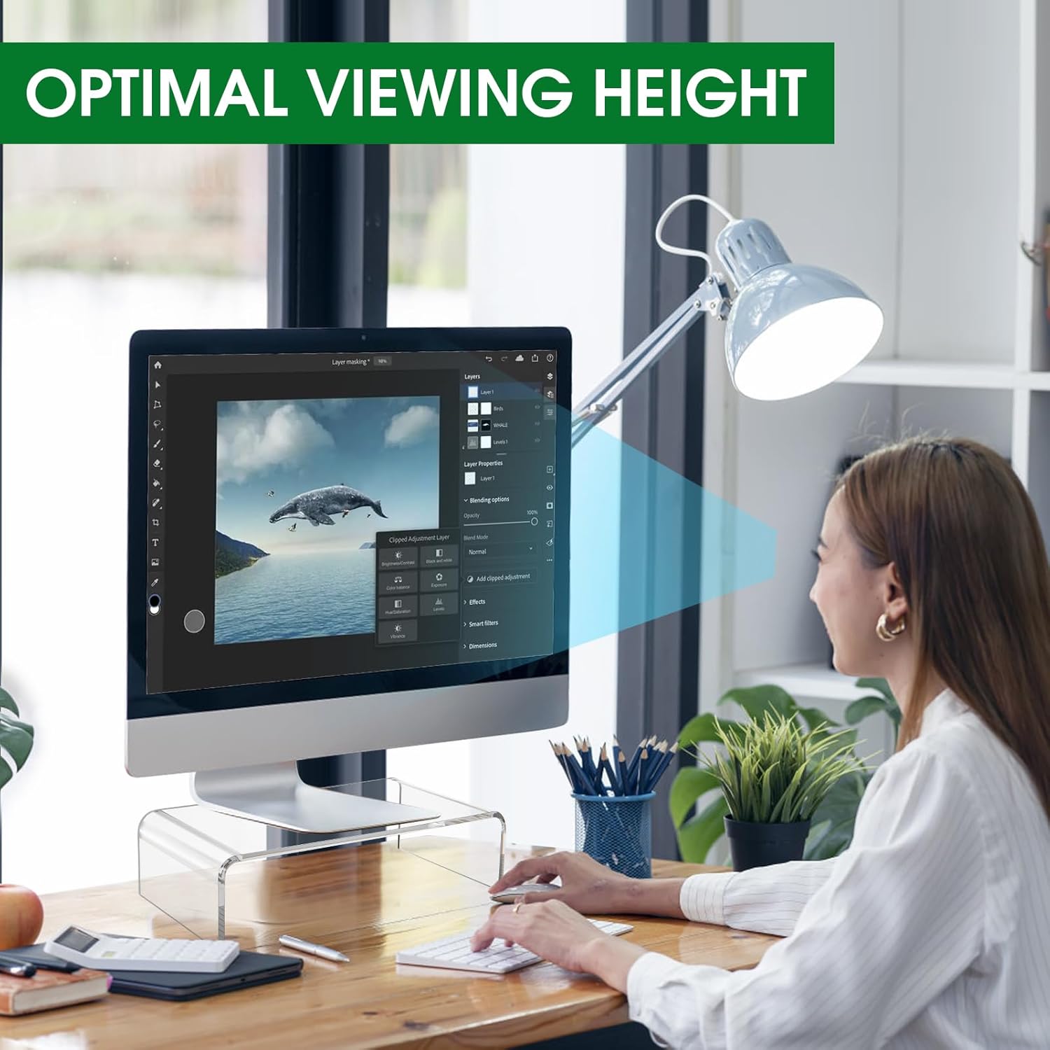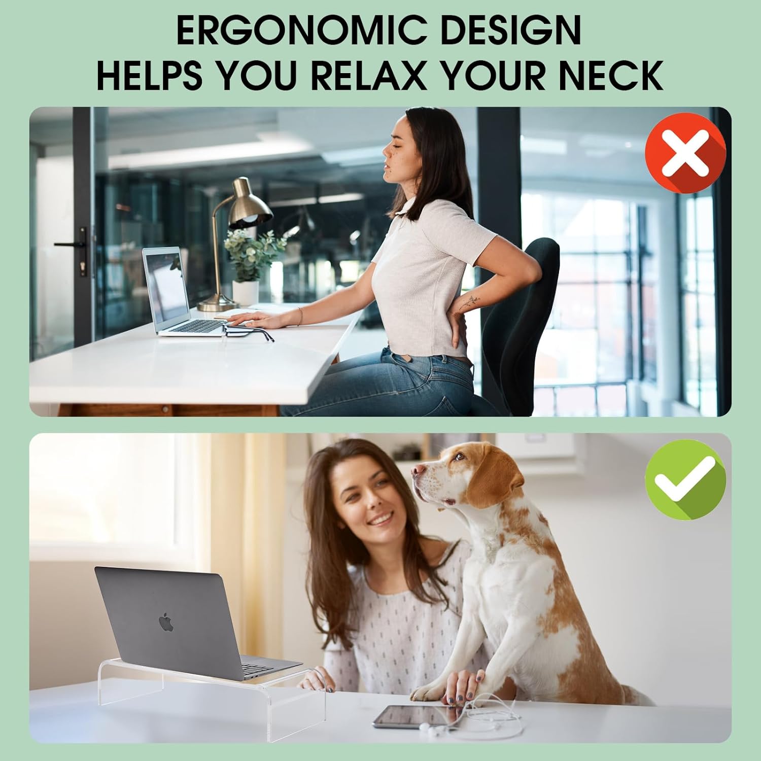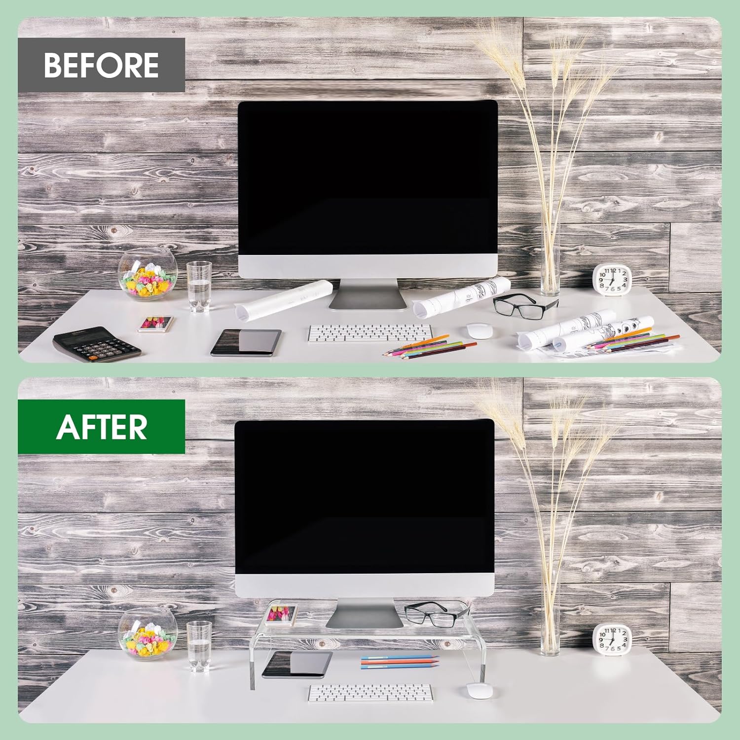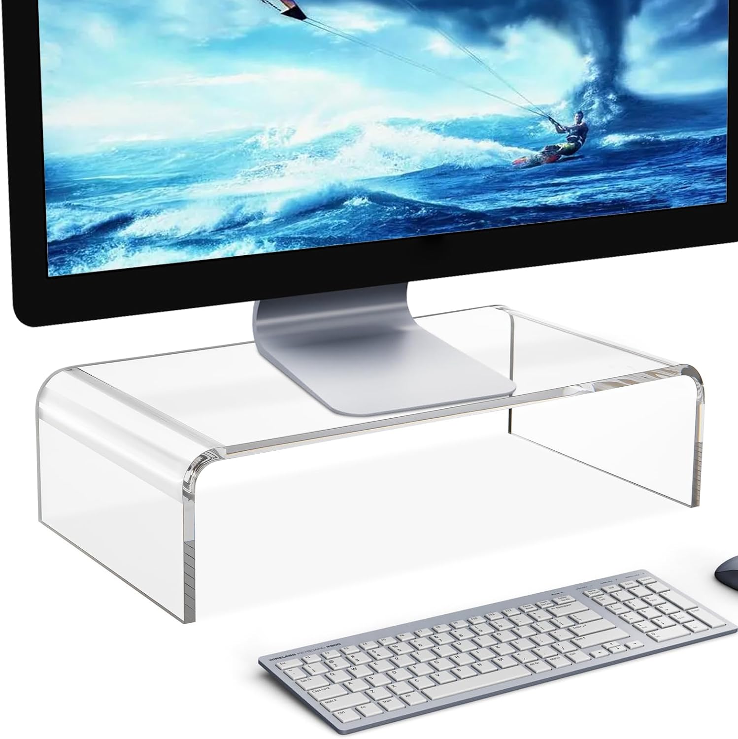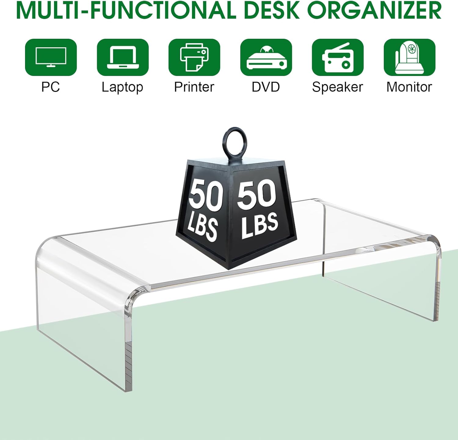 15in Acrylic Monitor Stand, Clear Acrylic Computer Riser, Laptop Desk Stand for Home Office, Printer, TV Screen