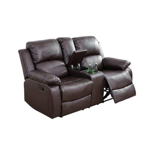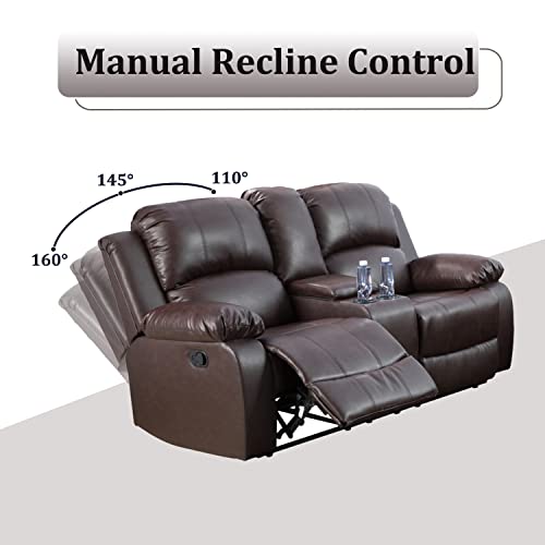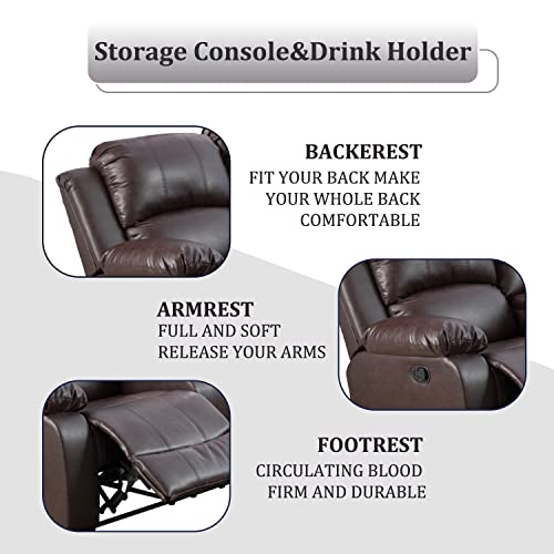Recliner Bonded Leather Sofa Set, 2 Piece Living Room Furniture Set, Leather Reclining Couch and Chair Set with Drop Down Table (Chair and Sofa Set, Ginger)