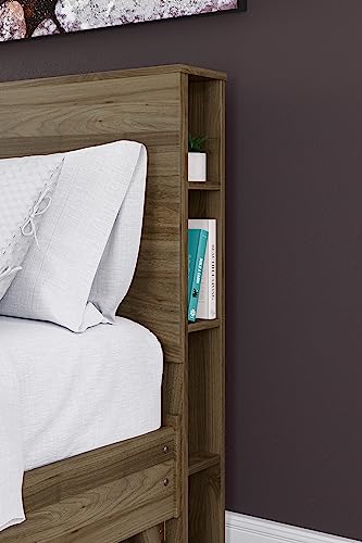 Signature Design by Ashley Aprilyn Bohemian Bookcase Headboard with 6 Open Cubbies and 2 USB Charging Ports ONLY, Full, Light Brown