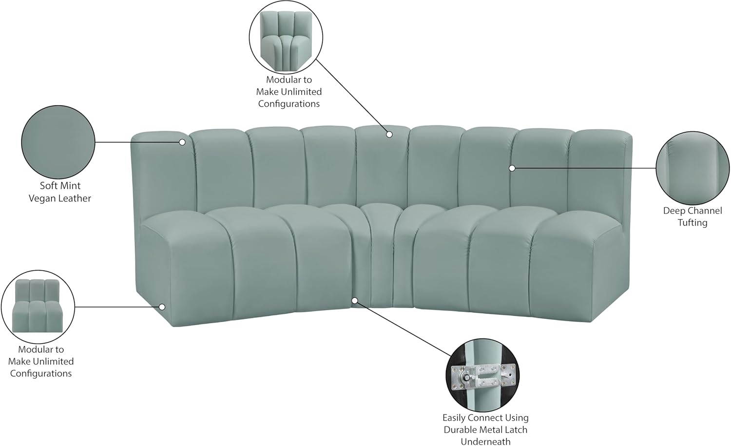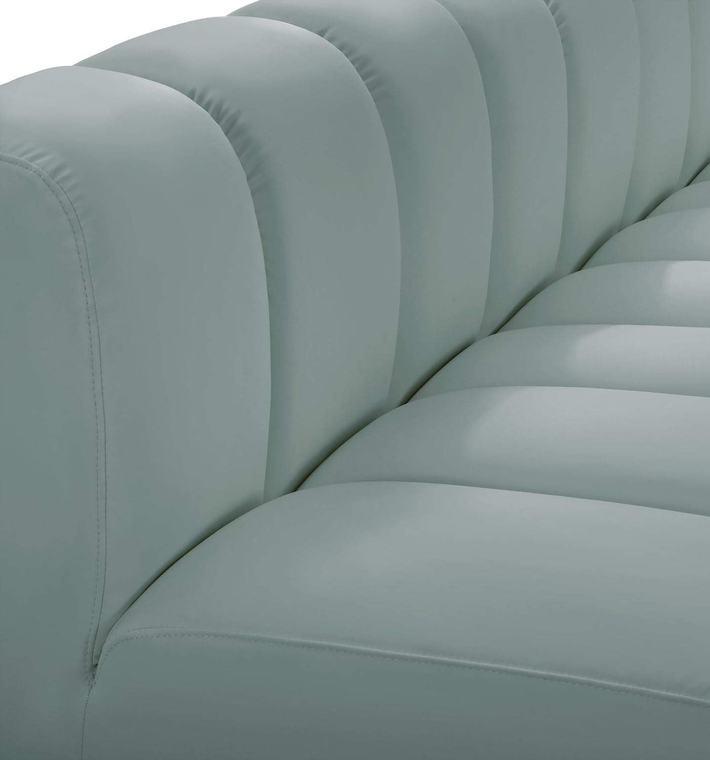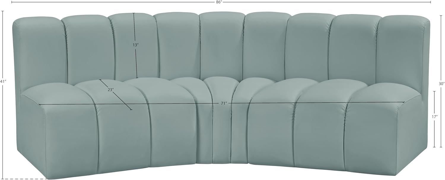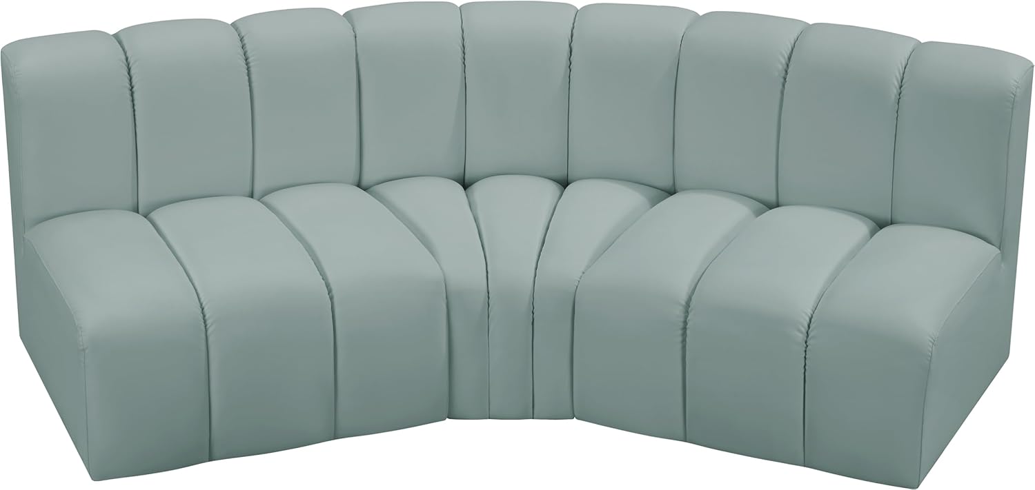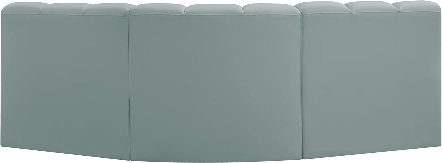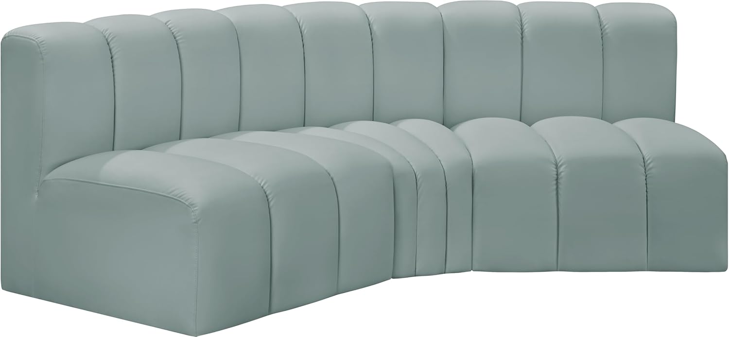 Meridian Furniture Arc Collection Modern | Contemporary Sofa with Soft Vegan Leather, Deep Channel Tufting, Modular, 86" W x 41" D x 30" H, Mint