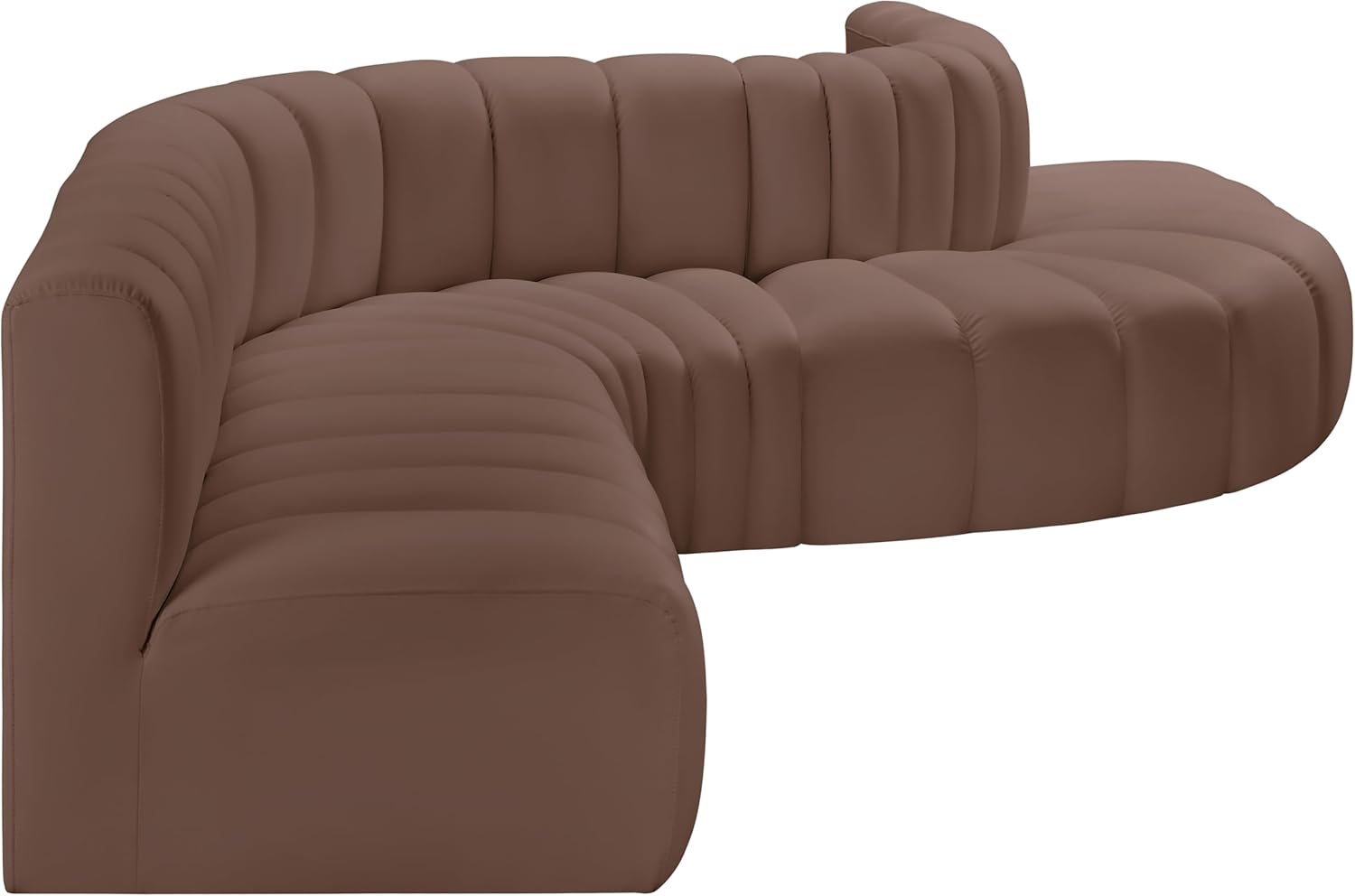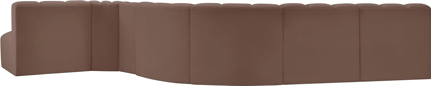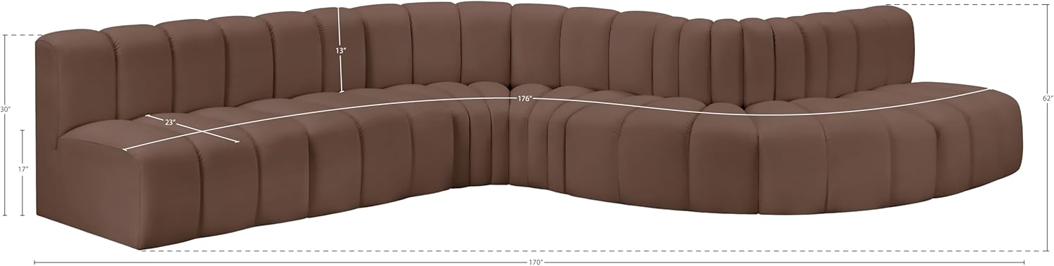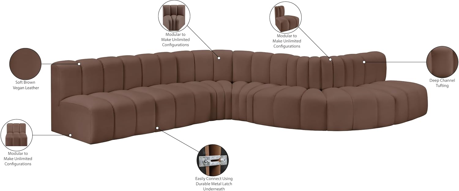 Meridian Furniture Arc Collection Modern | Contemporary Sofa with Soft Vegan Leather, Deep Channel Tufting, Modular, 170" W x 62" D x 30" H, Brown