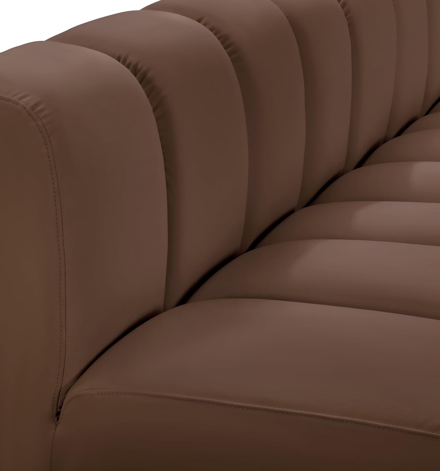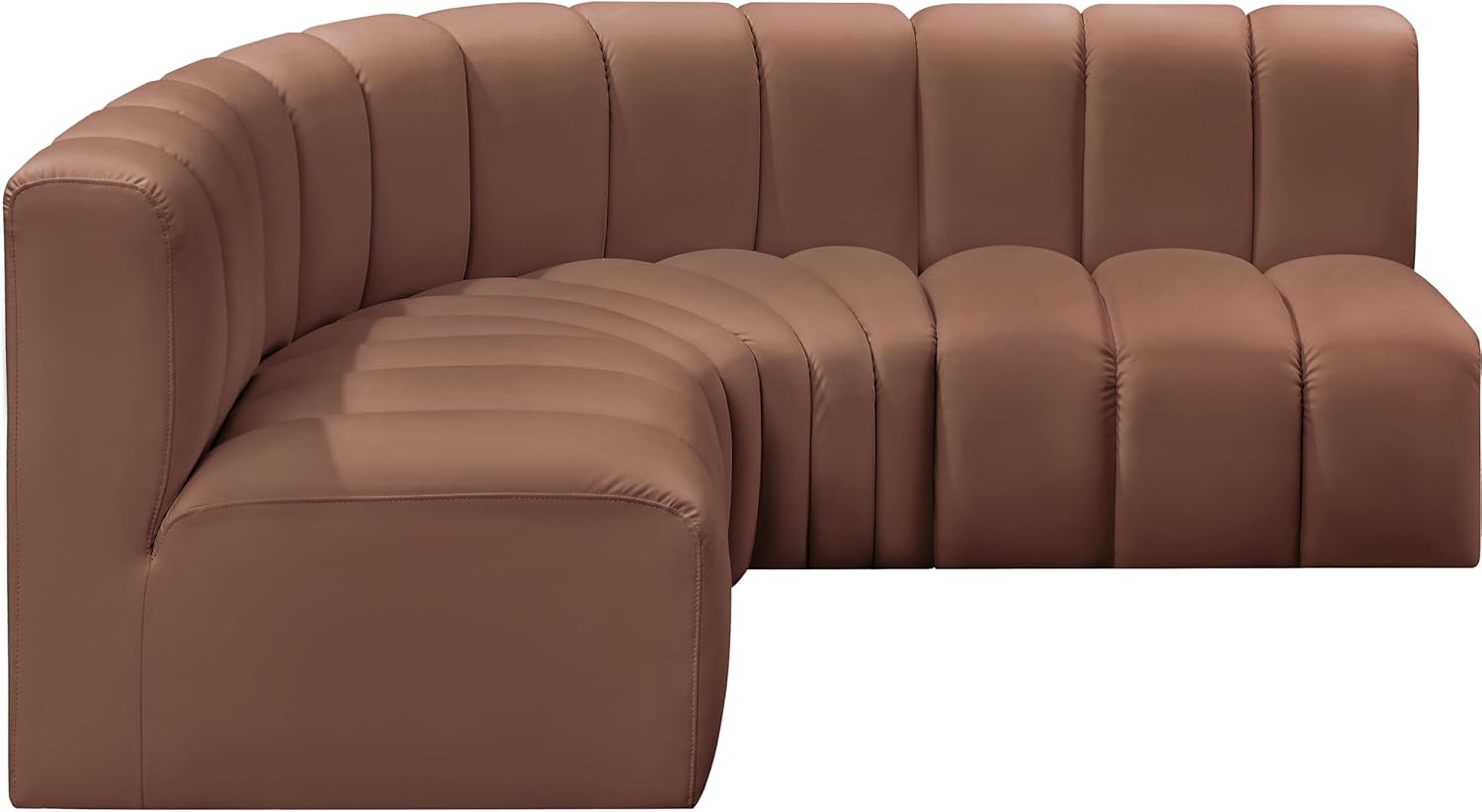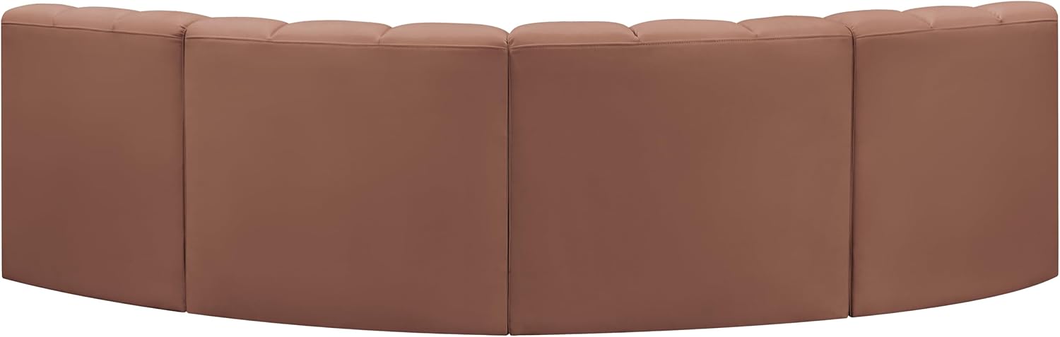 Meridian Furniture Arc Collection Modern | Contemporary Sofa with Soft Vegan Leather, Deep Channel Tufting, Modular, 170" W x 62" D x 30" H, Brown