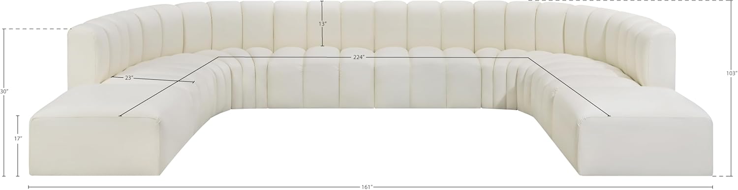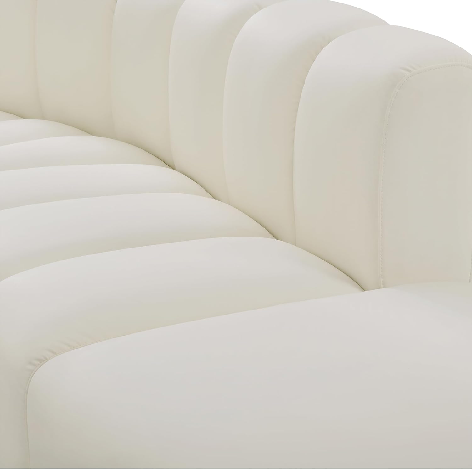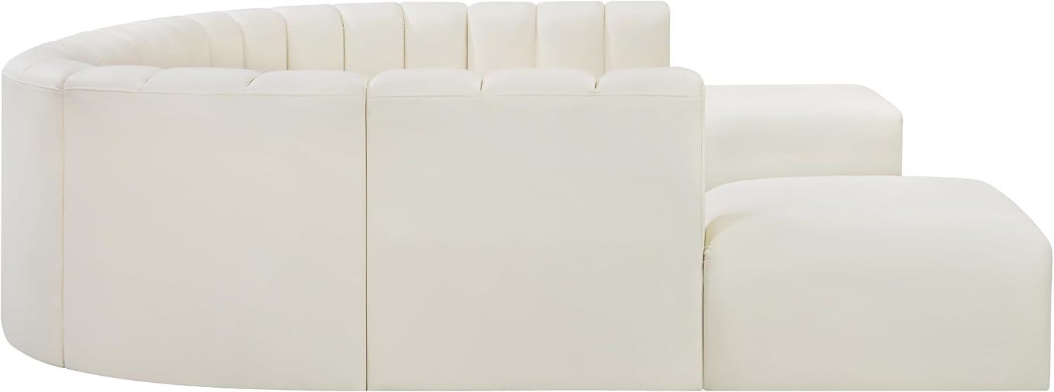 Meridian Furniture Arc Collection Modern | Contemporary Sofa with Soft Vegan Leather, Deep Channel Tufting, Modular, 161" W x 103" D x 30" H, Cream