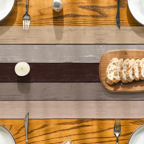 Artoid Mode Brown Retro Rustic Wood Texture Table Runner, Seasonal Spring Kitchen Dining Table Decoration for Home Party Decor 13x60 Inch