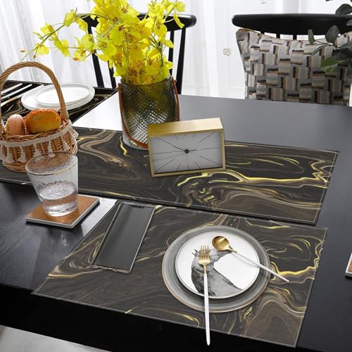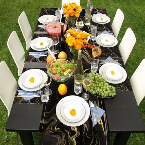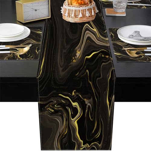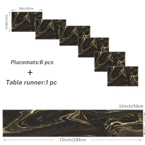 Marble Vintage Brown Table Runner and Placemats Set of 6, Retro Green Stone Abstract Dining Table Decor for Daily Use(1 Table Runner 72 inches Long and 6 Placemats)
