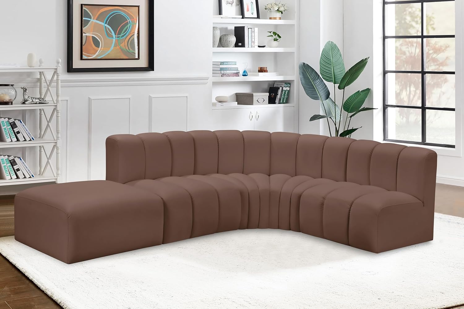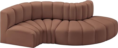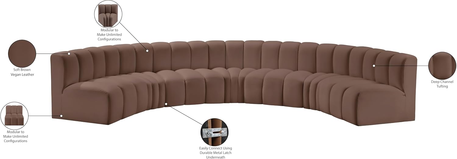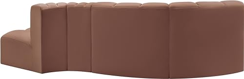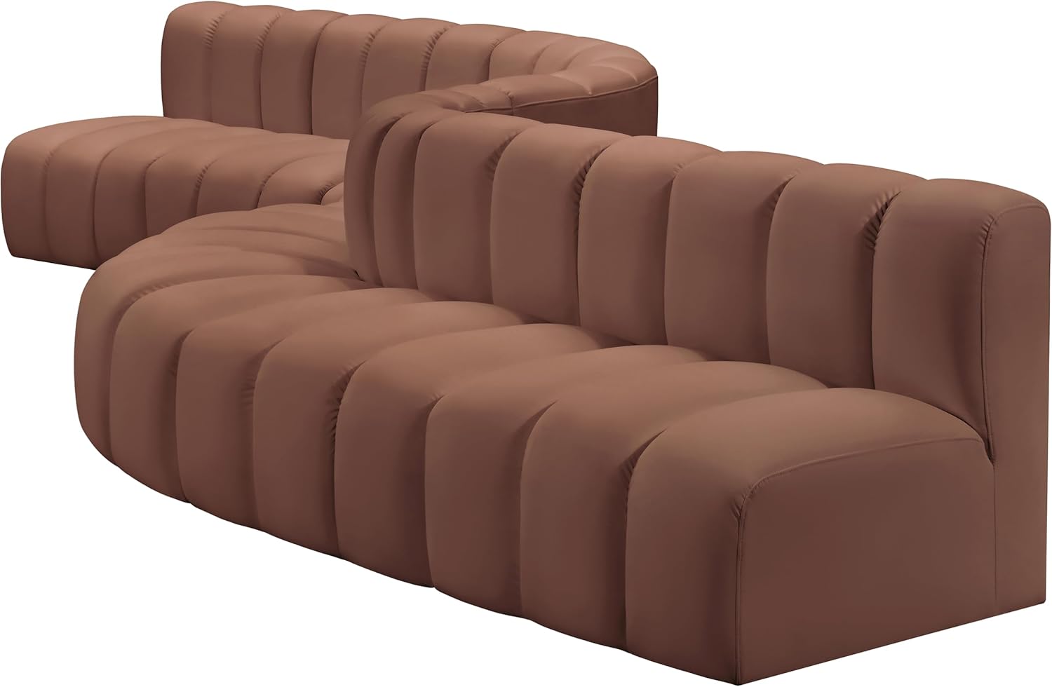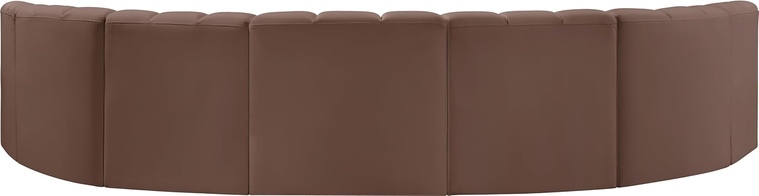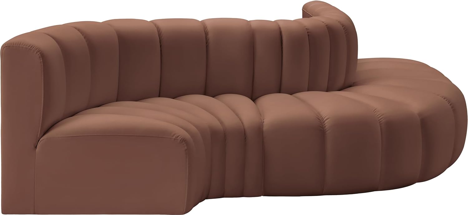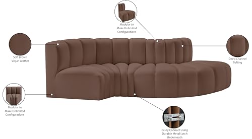 Meridian Furniture Arc Collection Modern | Contemporary Sofa with Soft Vegan Leather, Deep Channel Tufting, Modular, 127" W x 61" D x 30" H, Brown