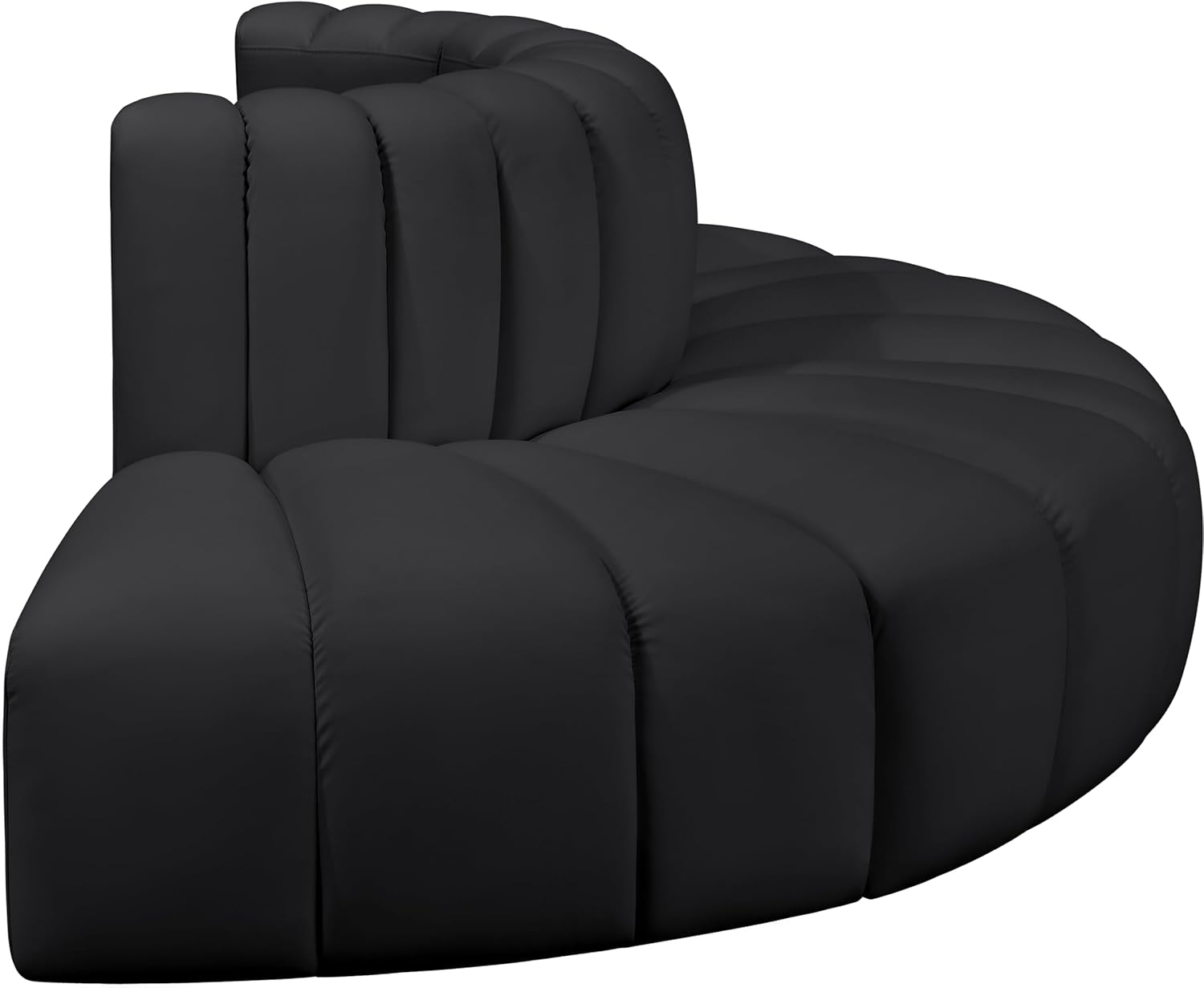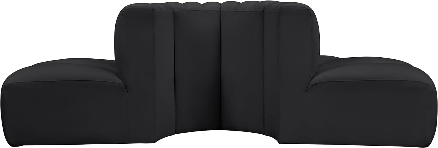 Meridian Furniture Arc Collection Modern | Contemporary Sofa with Soft Vegan Leather, Deep Channel Tufting, Modular, 90" W x 45" D x 30" H, Black