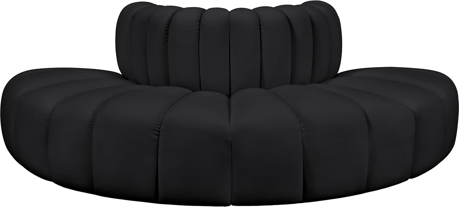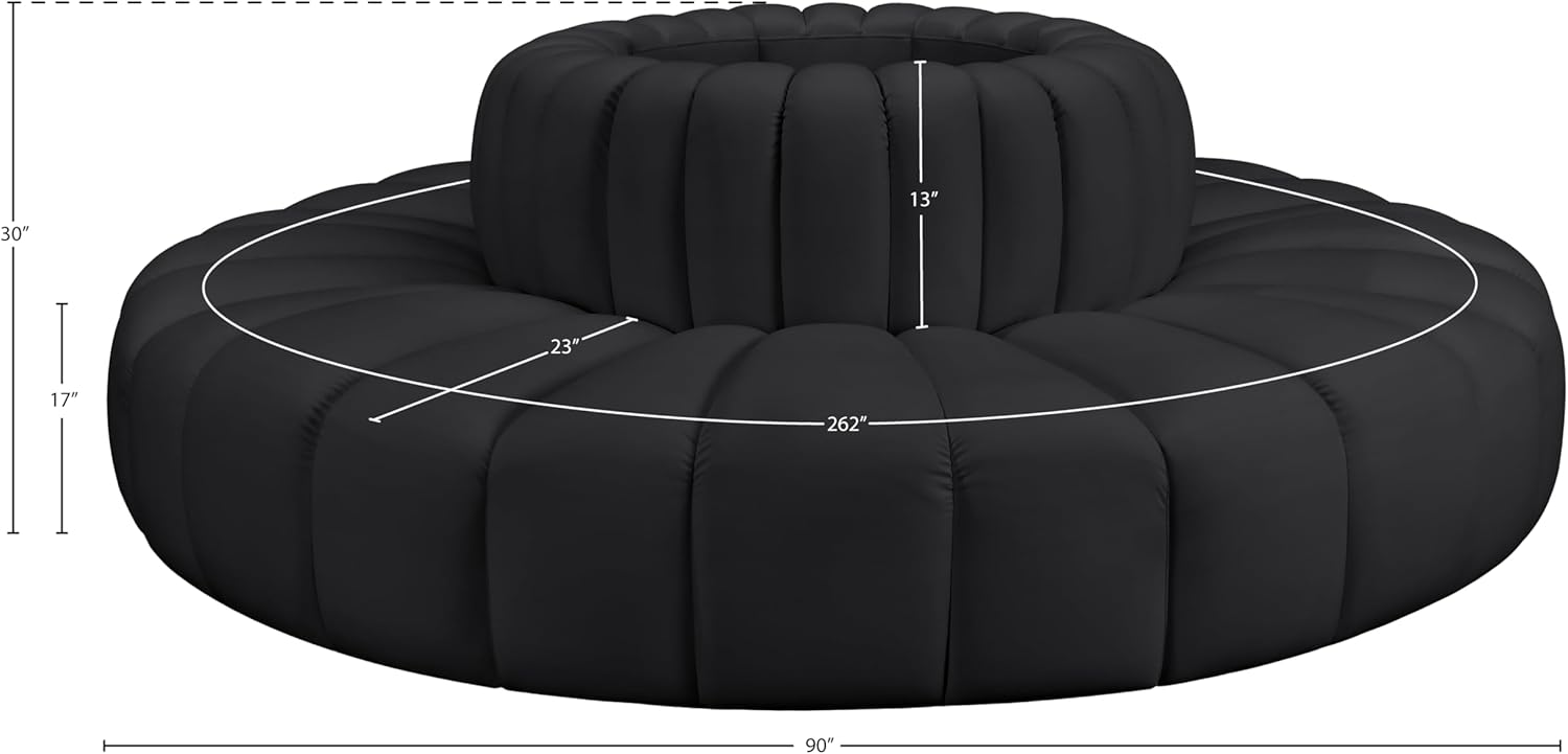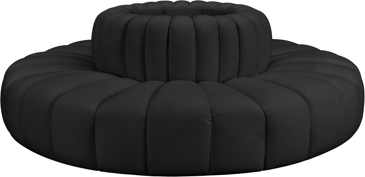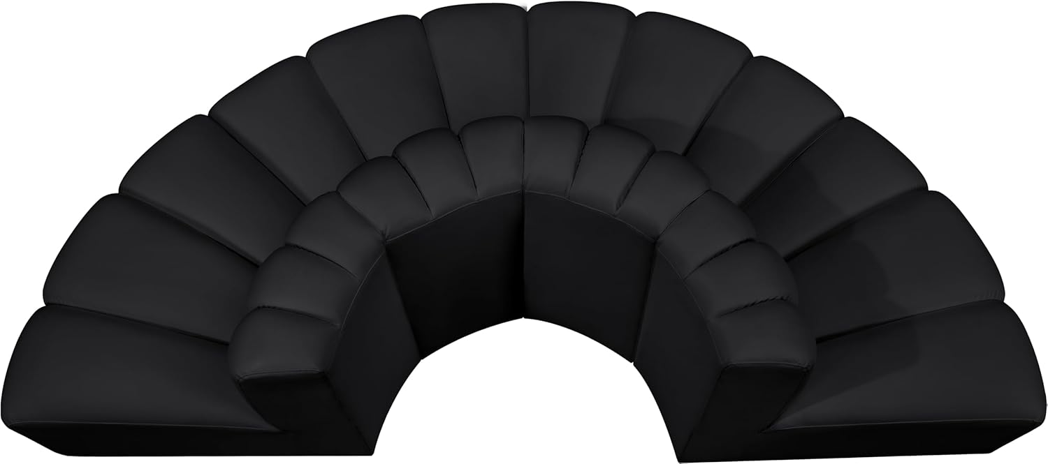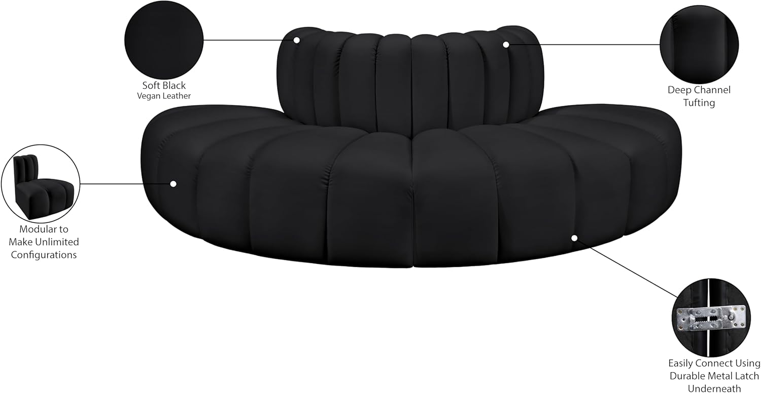 Meridian Furniture Arc Collection Modern | Contemporary Sofa with Soft Vegan Leather, Deep Channel Tufting, Modular, 90" W x 90" D x 30" H, Black