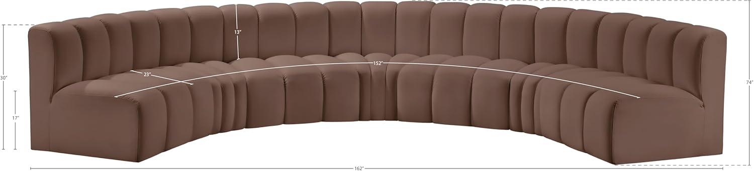 Meridian Furniture Arc Collection Modern | Contemporary Sofa with Soft Vegan Leather, Deep Channel Tufting, Modular, 162" W x 74" D x 30" H, Brown
